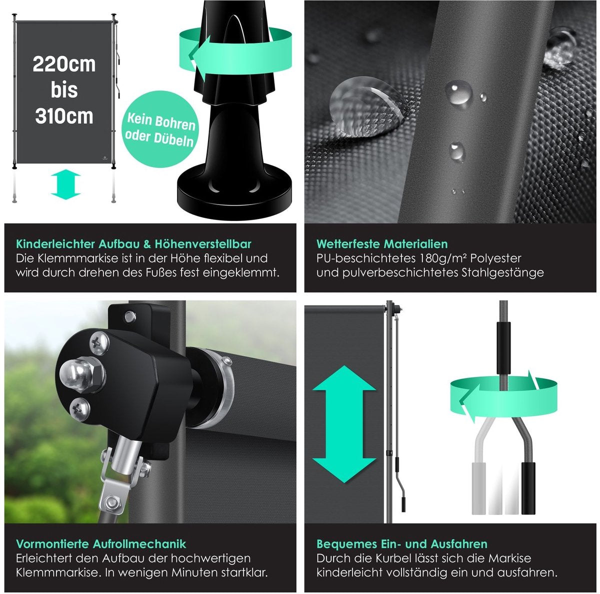 KESSER® Klemzonwering, 150 x 310 verticale zonwering voor buiten, uitschuifbaar en ondoorzichtig antraciet