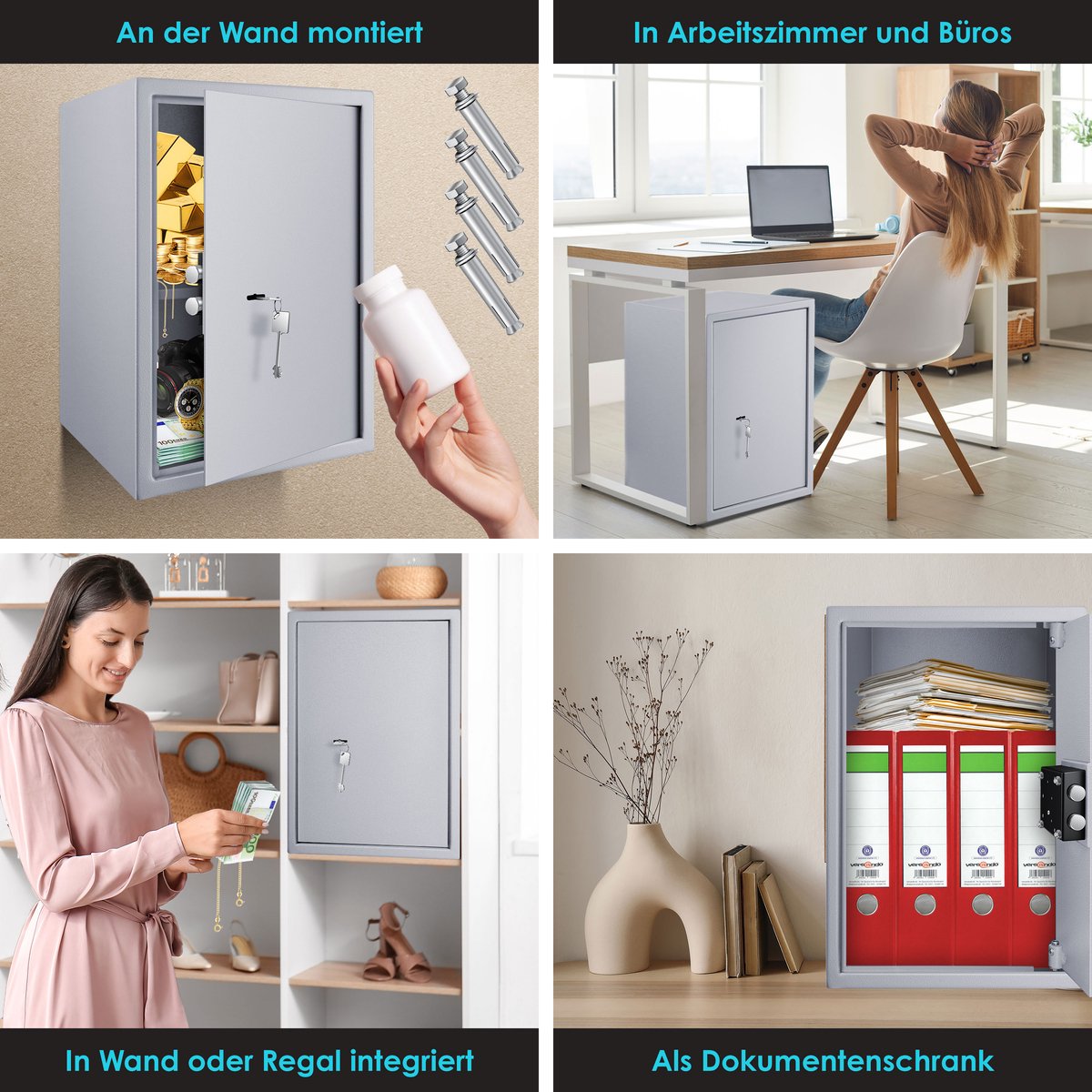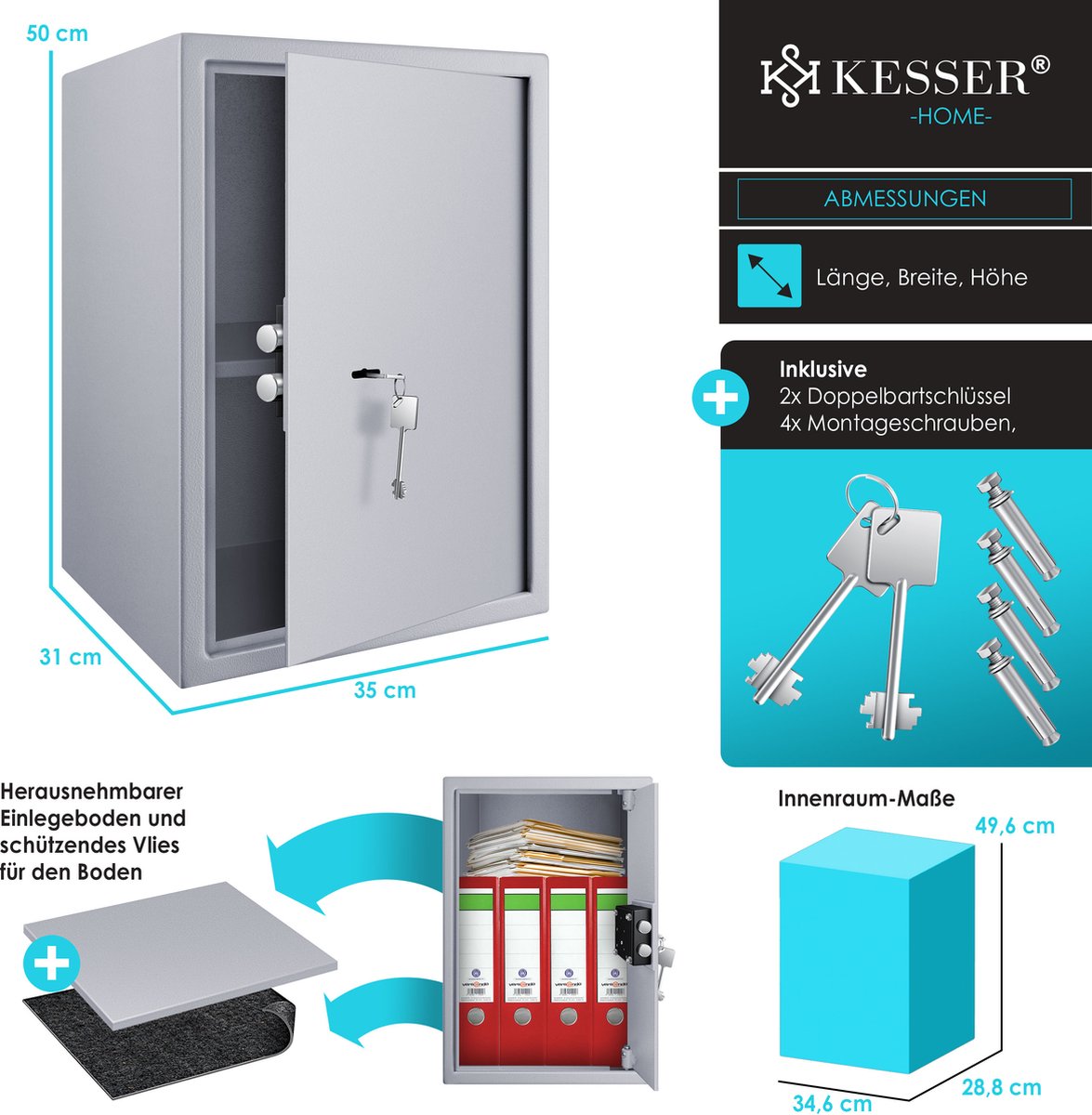 KESSER® Meubelkluis met Dubbelbaardslot, Kluis Geldkast Vloer-Wandkluis Muurkluis 50x35x31 cm incl. 2 Sleutels & Bevestigingsschroeven
