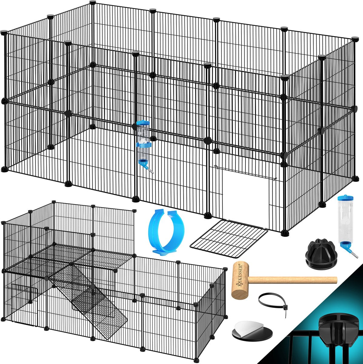 Met een afstand van 1,5 cm tussen de spijlen zorgt de KESSER Konijnenren voor extra veiligheid. Het modulaire systeem biedt vele vormen met een groot oppervlak. Eenvoudig op te zetten en af te breken dankzij het kliksysteem, inclusief handige deur voor het zelfstandig betreden en verlaten van uw huisdieren.