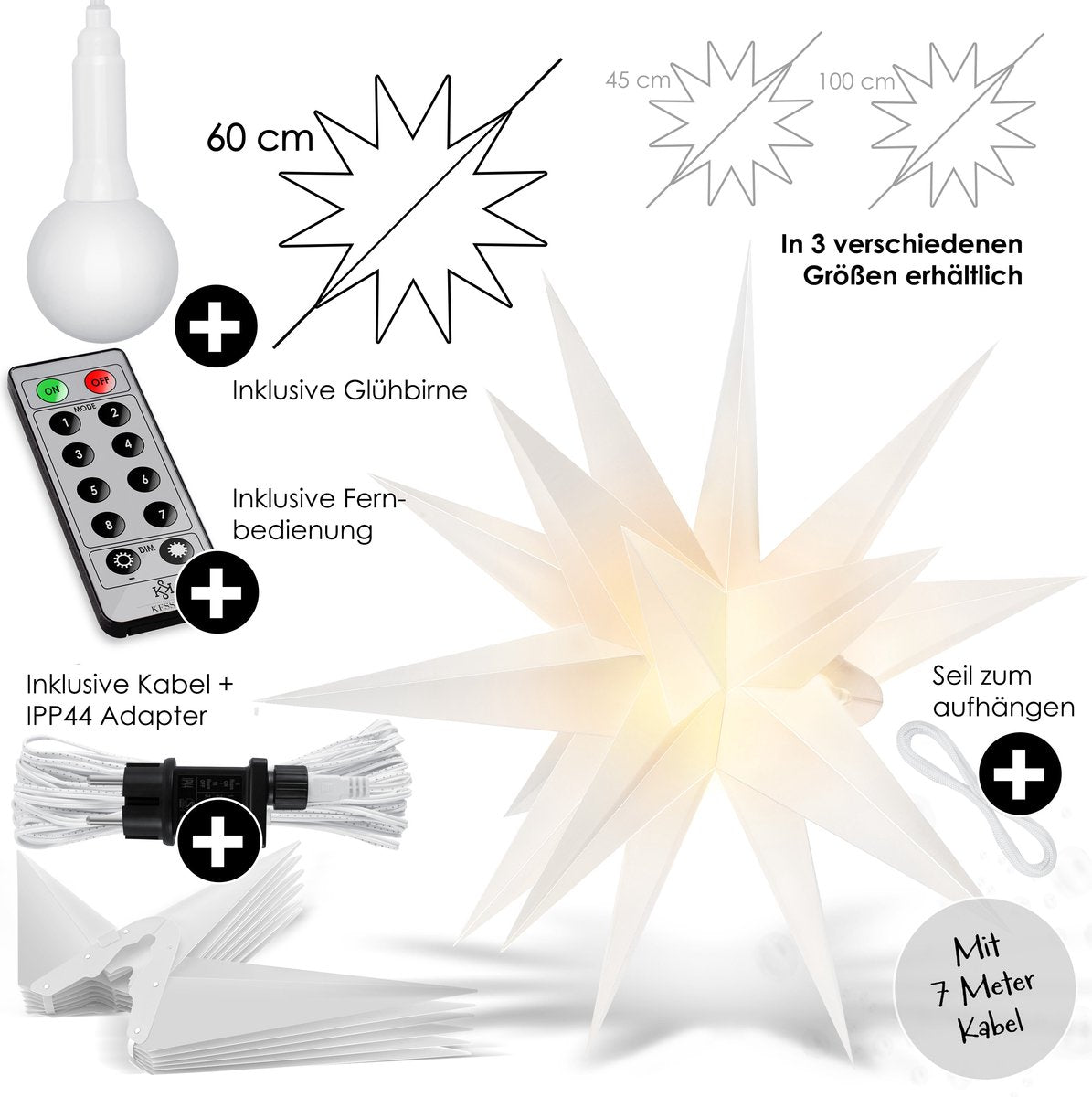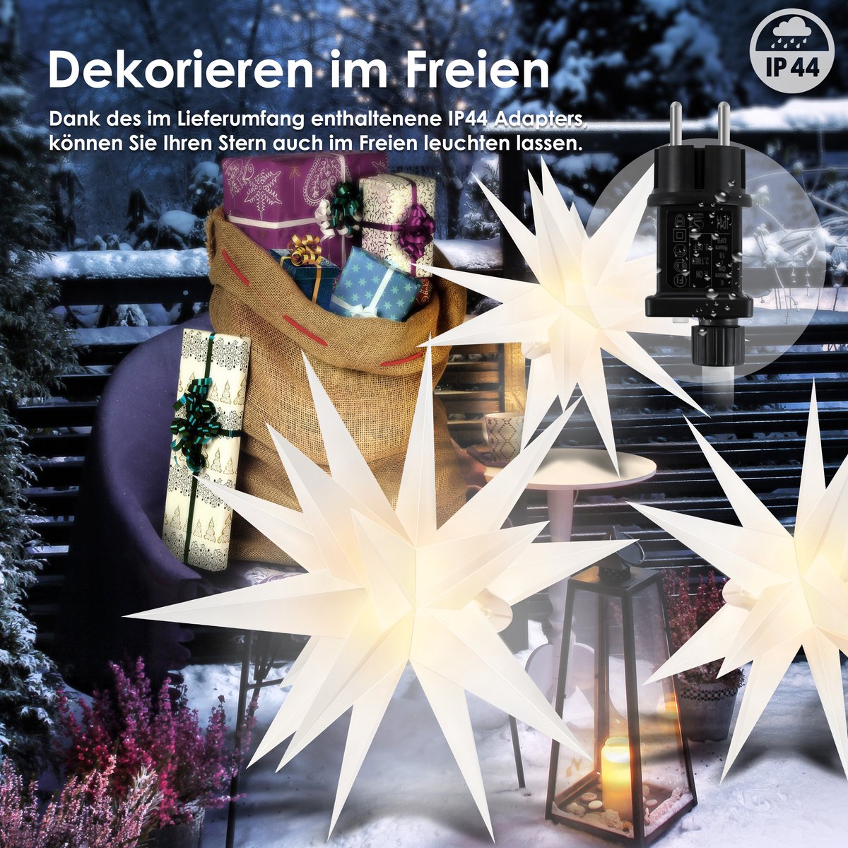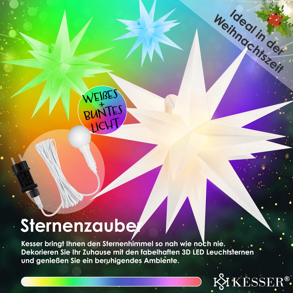 KESSER verlichte ster perfect voor binnen en buiten dankzij IP44-bescherming, uniek 3D-ontwerp van 18 spikes voor een gezellige kerstsfeer, helder en aangenaam licht.