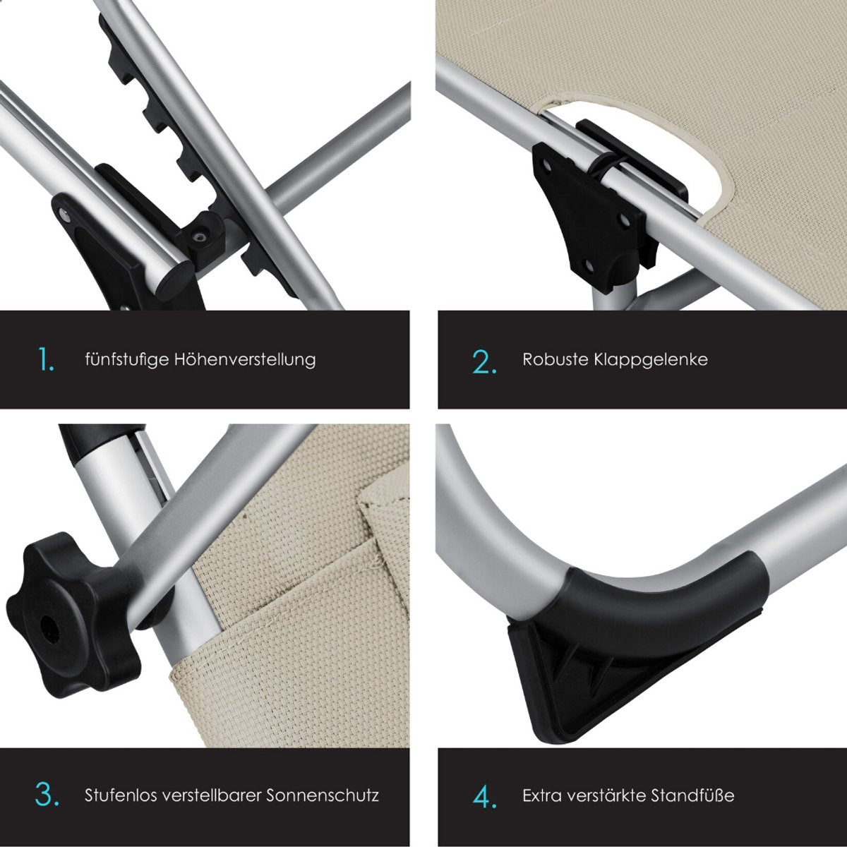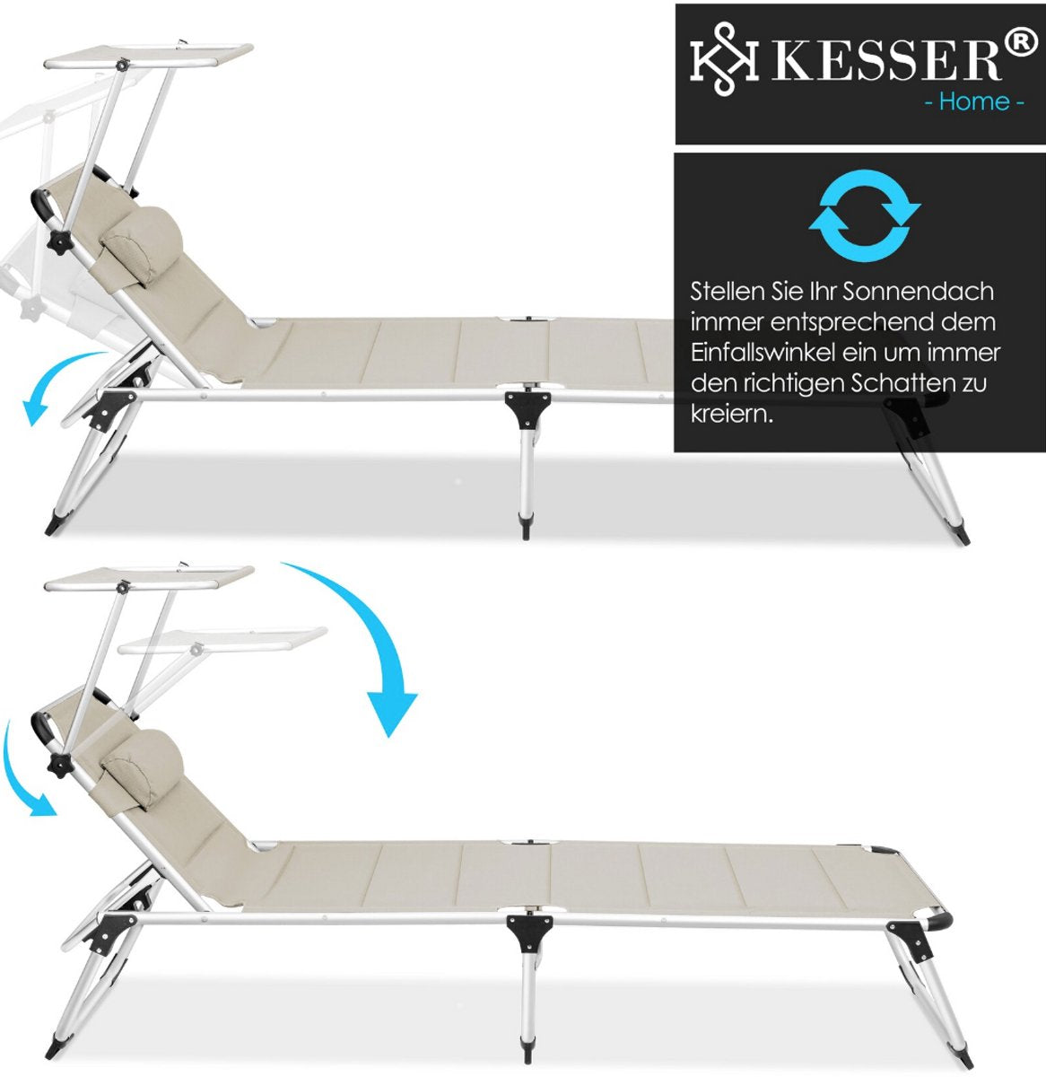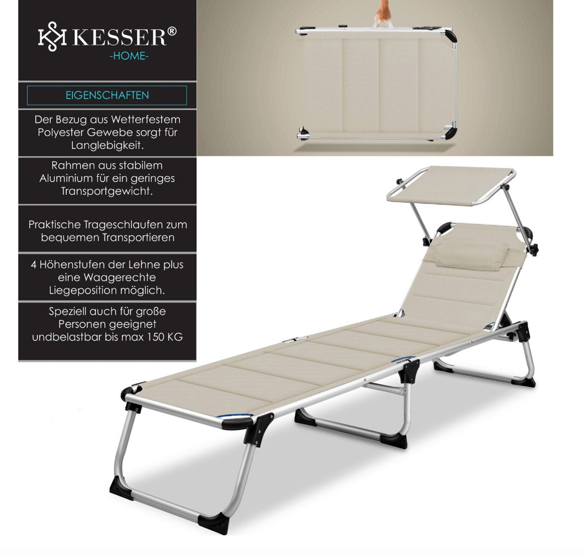 Met onze draagbare KESSER-opvouwbare ligstoel van lichtgewicht aluminium met beschermend zonnedak bent u optimaal uitgerust voor het mooiste seizoen.