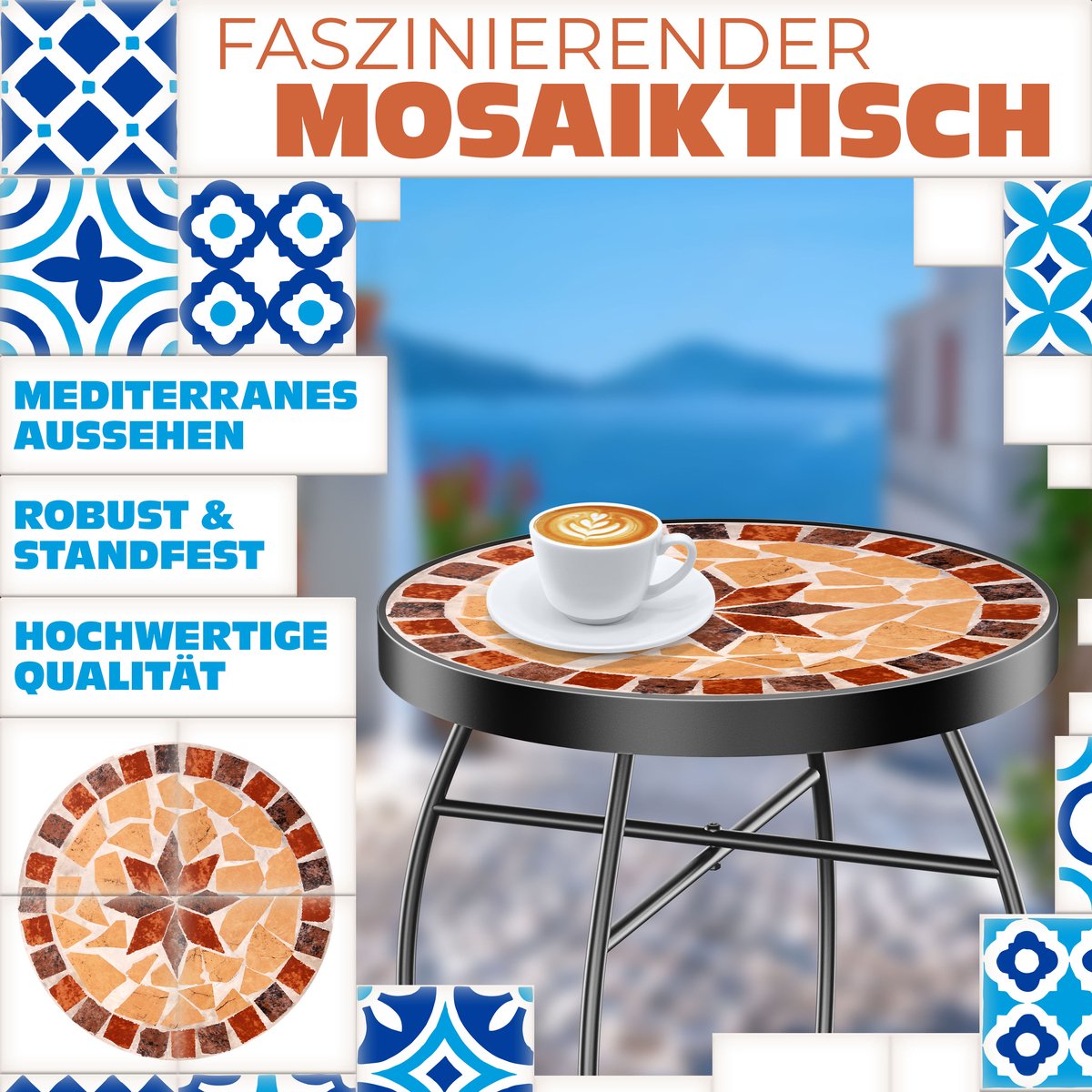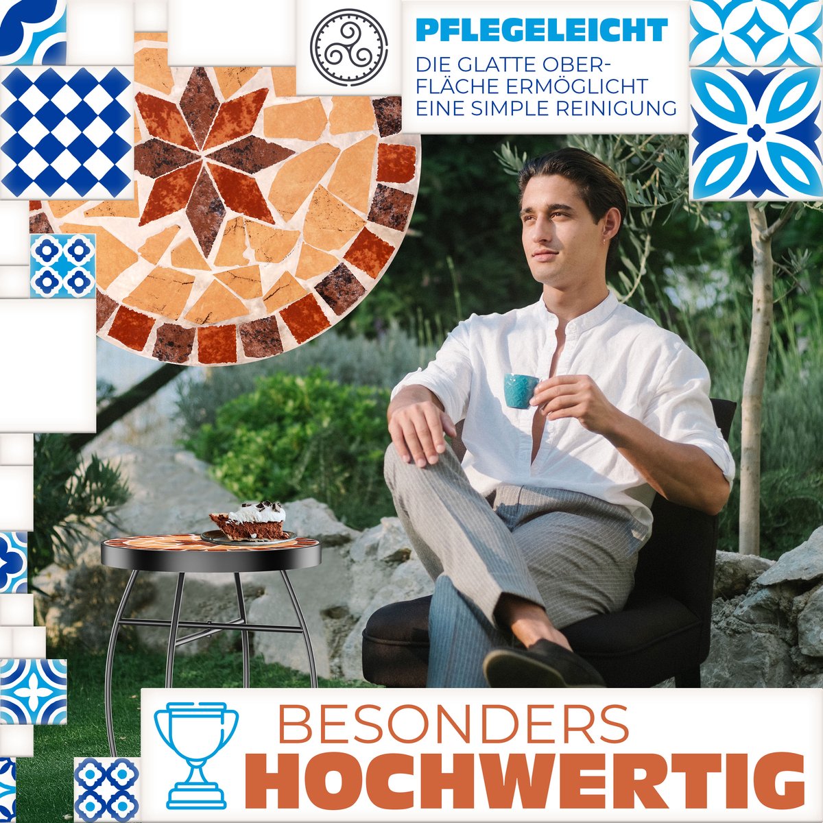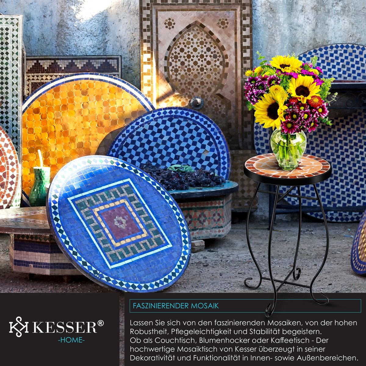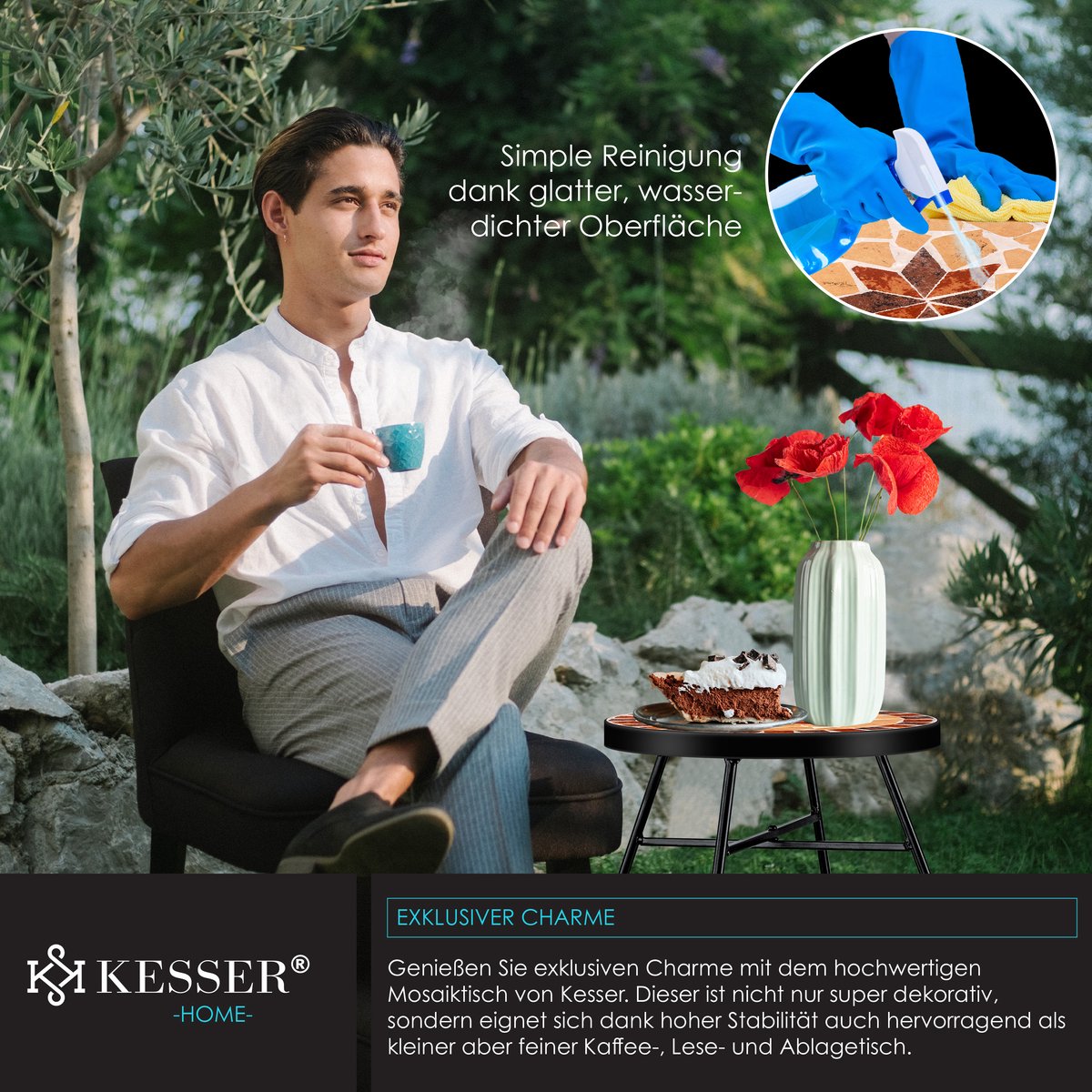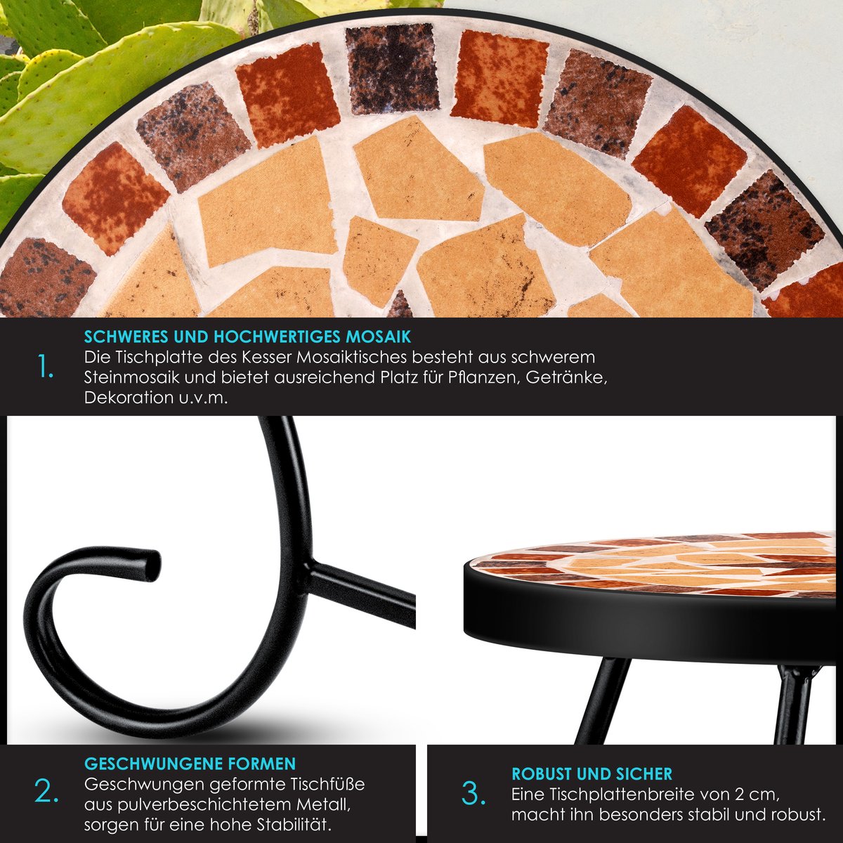 MAKKELIJK SCHOON TE MAKEN: Geniet van exclusieve charme met de hoogwaardige mozaïektafel van het merk KESSER. Deze is niet alleen super decoratief, maar dankzij de hoge stabiliteit ook ideaal als kleine maar ook fijne koffie-, lees- en opbergtafel. Schoonmaken is ook eenvoudig dankzij het gladde en waterbestendige oppervlak. Gewoon afspoelen met water en droogwrijven.