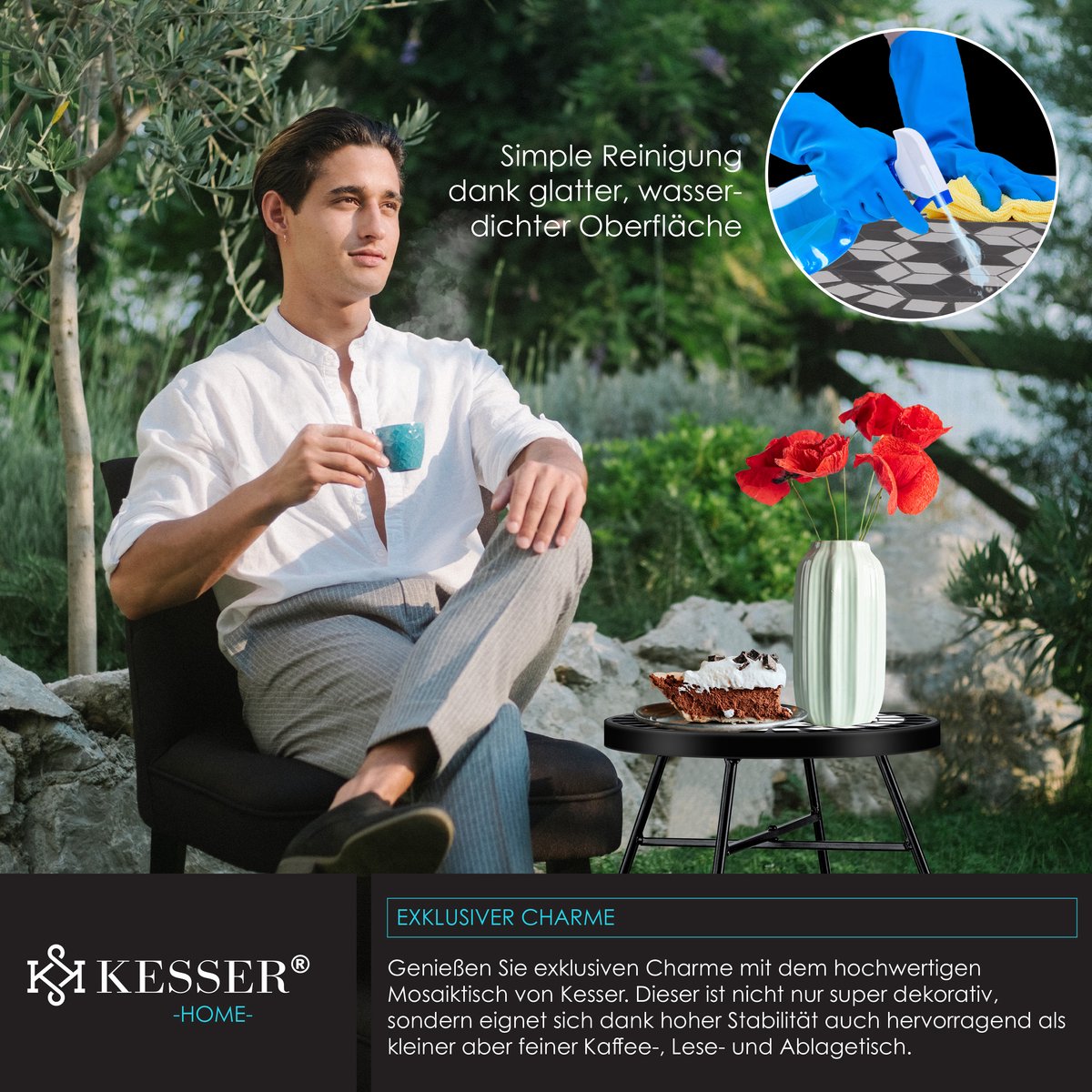 MAKKELIJK SCHOON TE MAKEN: Geniet van exclusieve charme met de hoogwaardige mozaïektafel van het merk KESSER. Deze is niet alleen super decoratief, maar dankzij de hoge stabiliteit ook ideaal als kleine maar ook fijne koffie-, lees- en opbergtafel. Schoonmaken is ook eenvoudig dankzij het gladde en waterbestendige oppervlak. Gewoon afspoelen met water en droogwrijven.