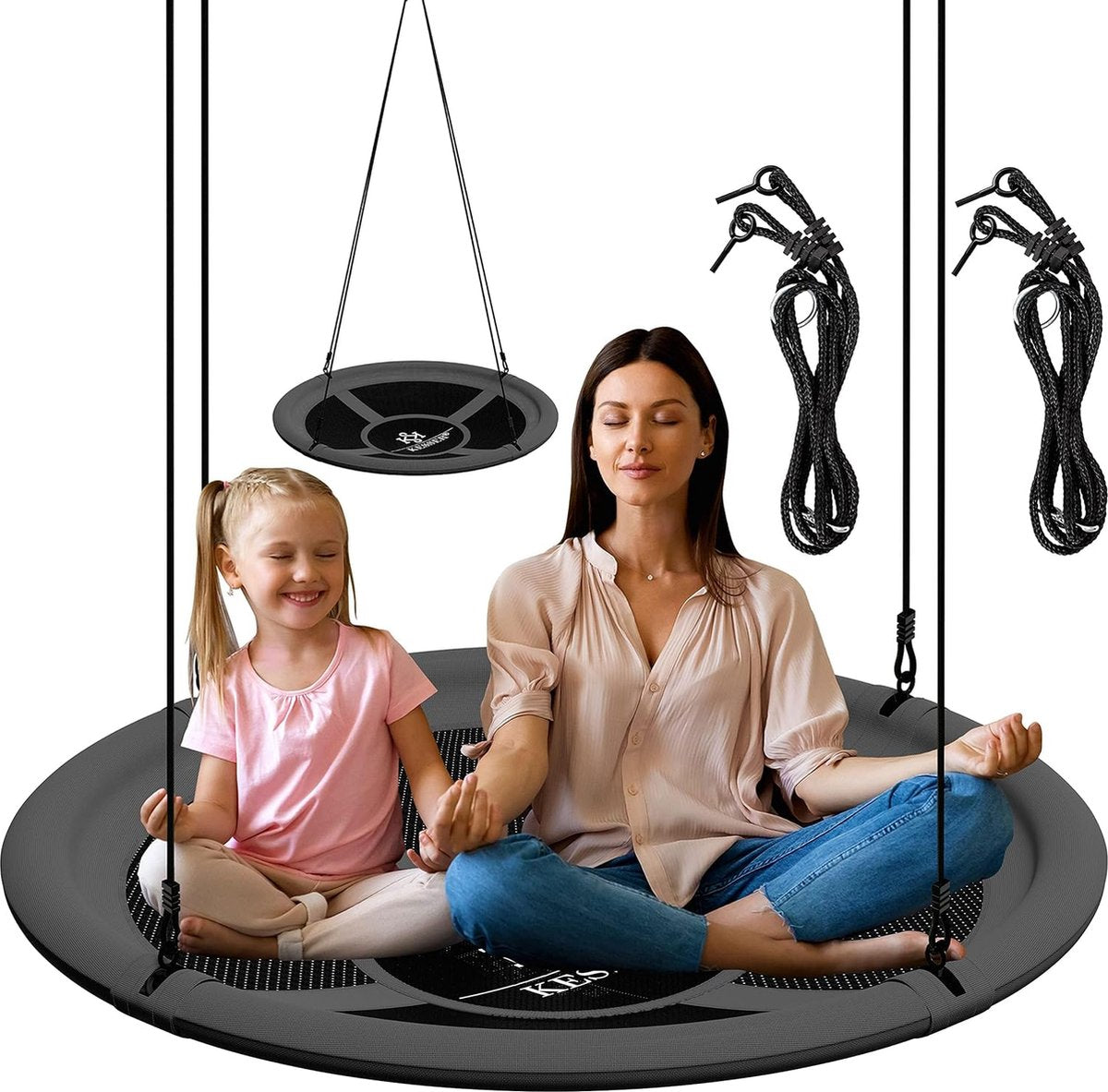KESSER Kinderrondschommel – hoge stabiliteit dankzij extra dikke PE-touwen, hoge draagkracht dankzij hoogwaardige en robuuste Textilene, geschikt voor binnen en buiten, veilige en dikke schuimrubberen bekleding, water- en UV-bestendig