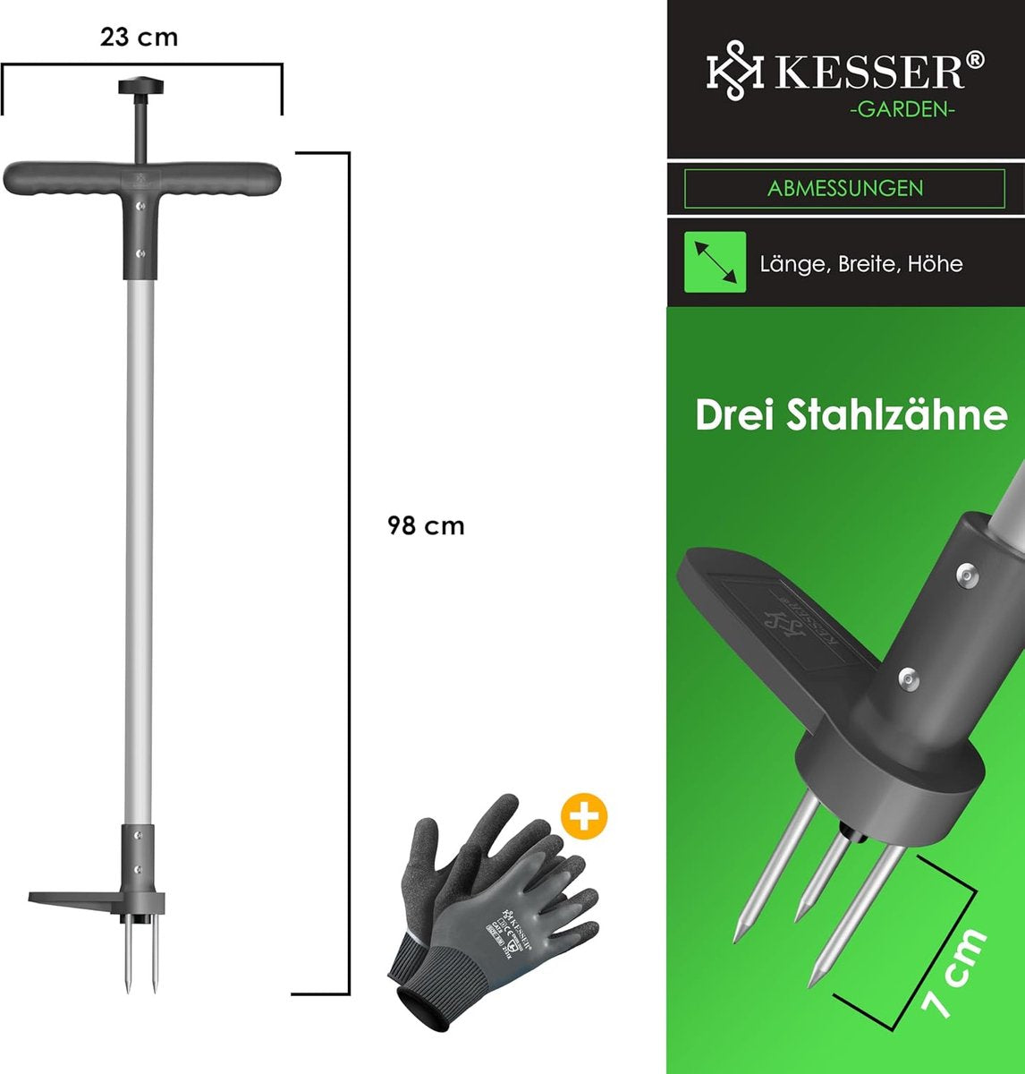 Effectieve bestrijding: de KESSER onkruidverwijderaar biedt een uiterst effectieve oplossing voor het verwijderen van vervelend onkruid in je tuin. Met zijn drie robuuste stalen tanden, die een lengte van maximaal 7 cm hebben, kun je onkruid moeiteloos en grondig verwijderen. Of het nu gaat om hardnekkig onkruid tussen je bloembedden of in je moestuin, deze onkruidverwijderaar doet er snel mee.