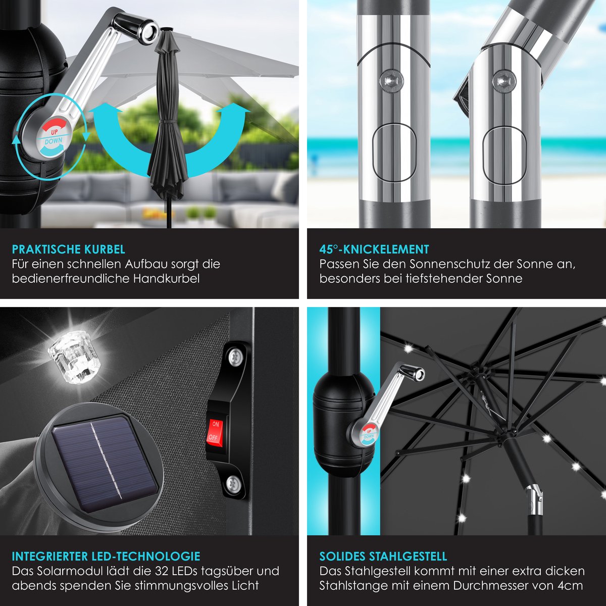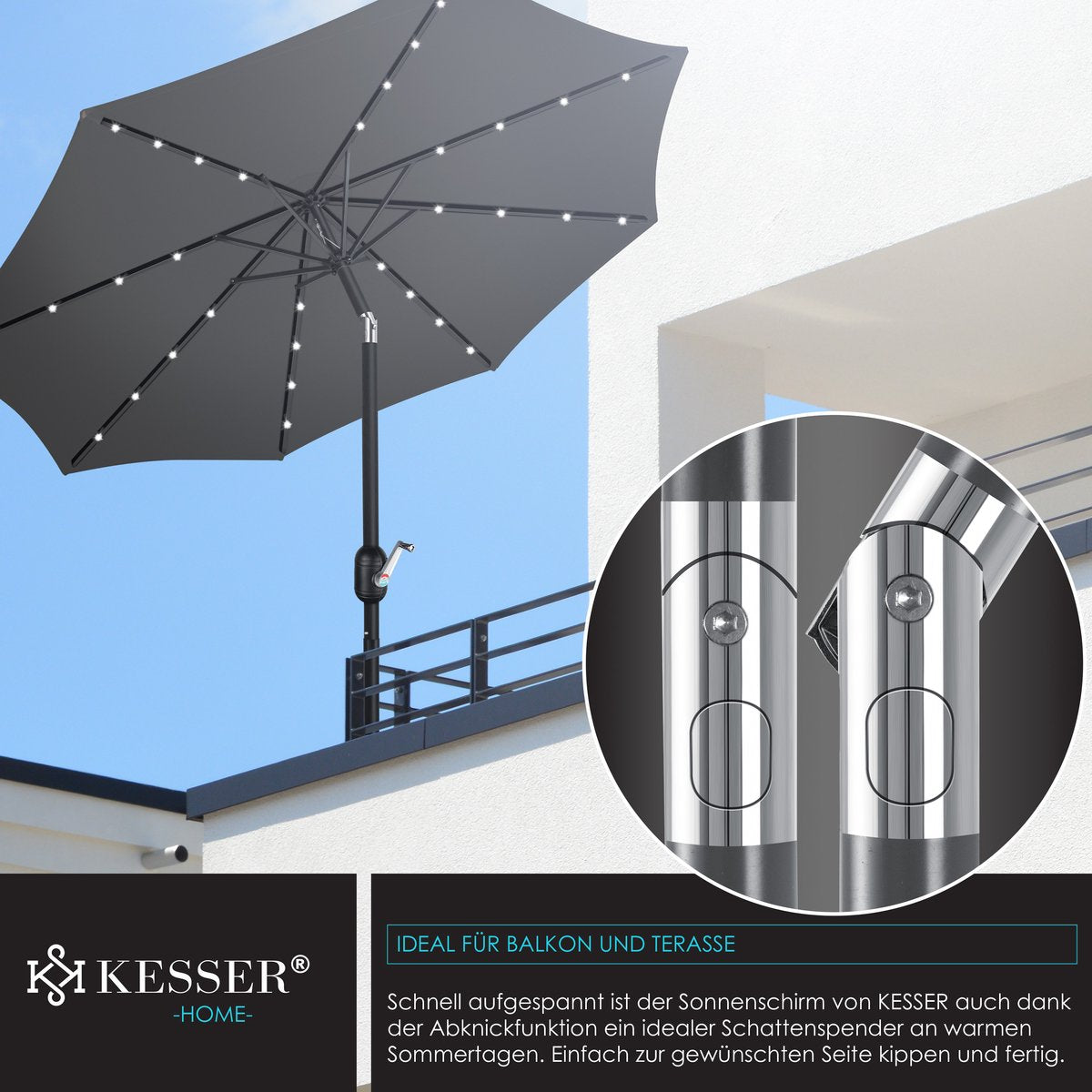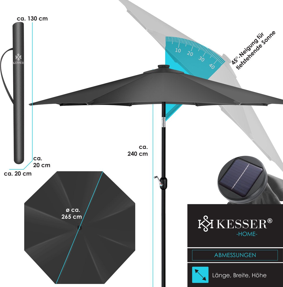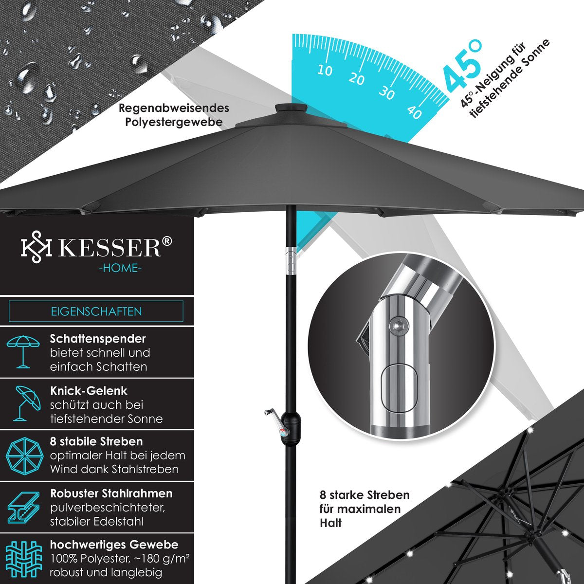 KESSER parasol LED met geïntegreerde knikverbinding voor ideale schaduw, stabiele roestvrijstalen en robuuste steunen, water- en UV-bescherming, opladen met daglicht dankzij geïntegreerde zonnemodule, incl. 2in1 hoes & tas