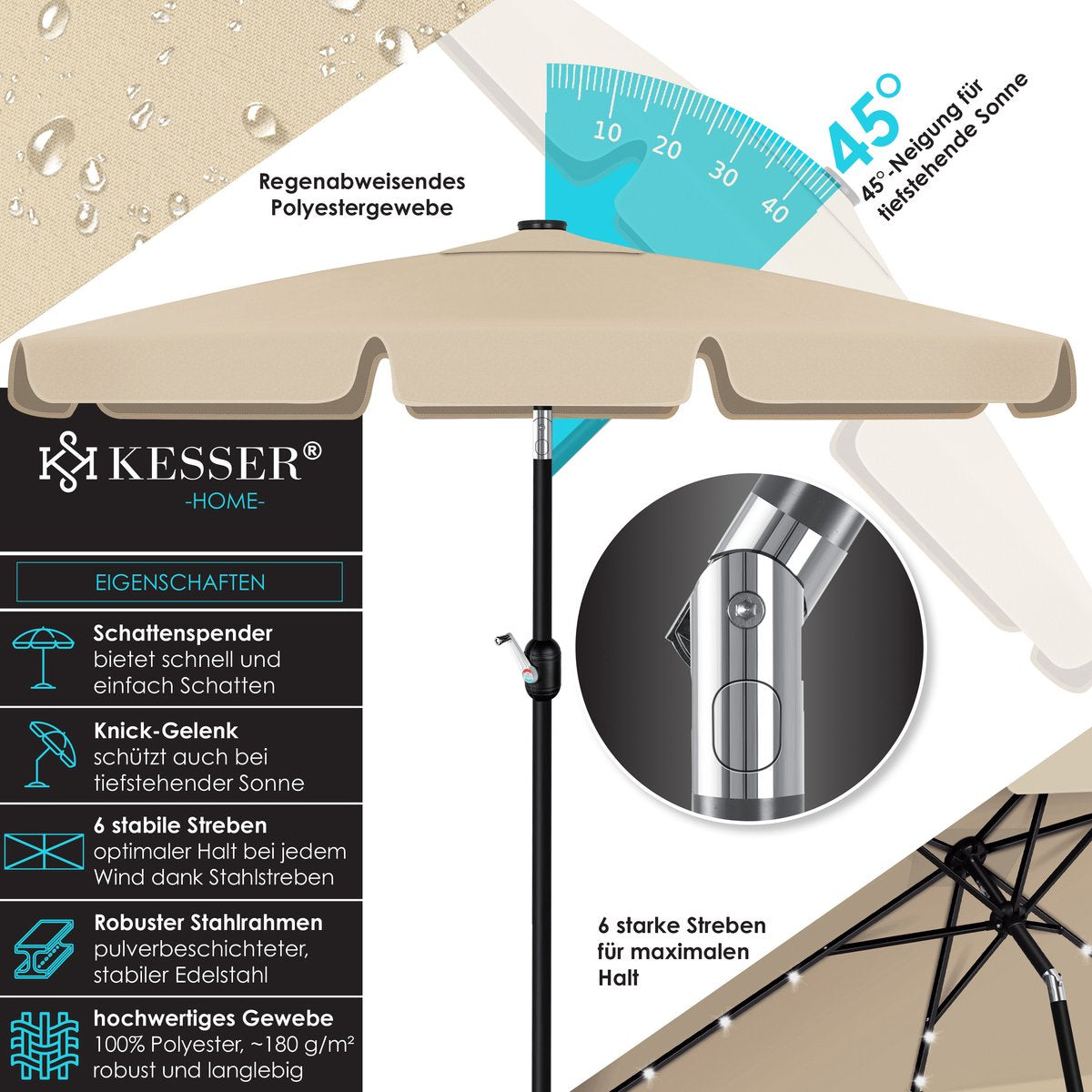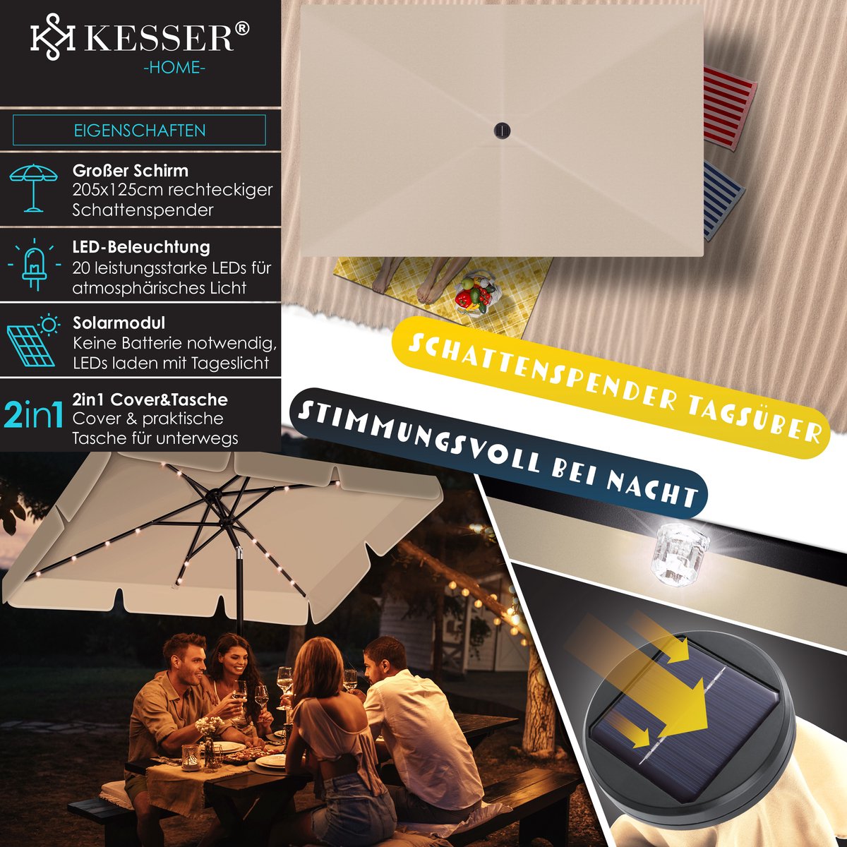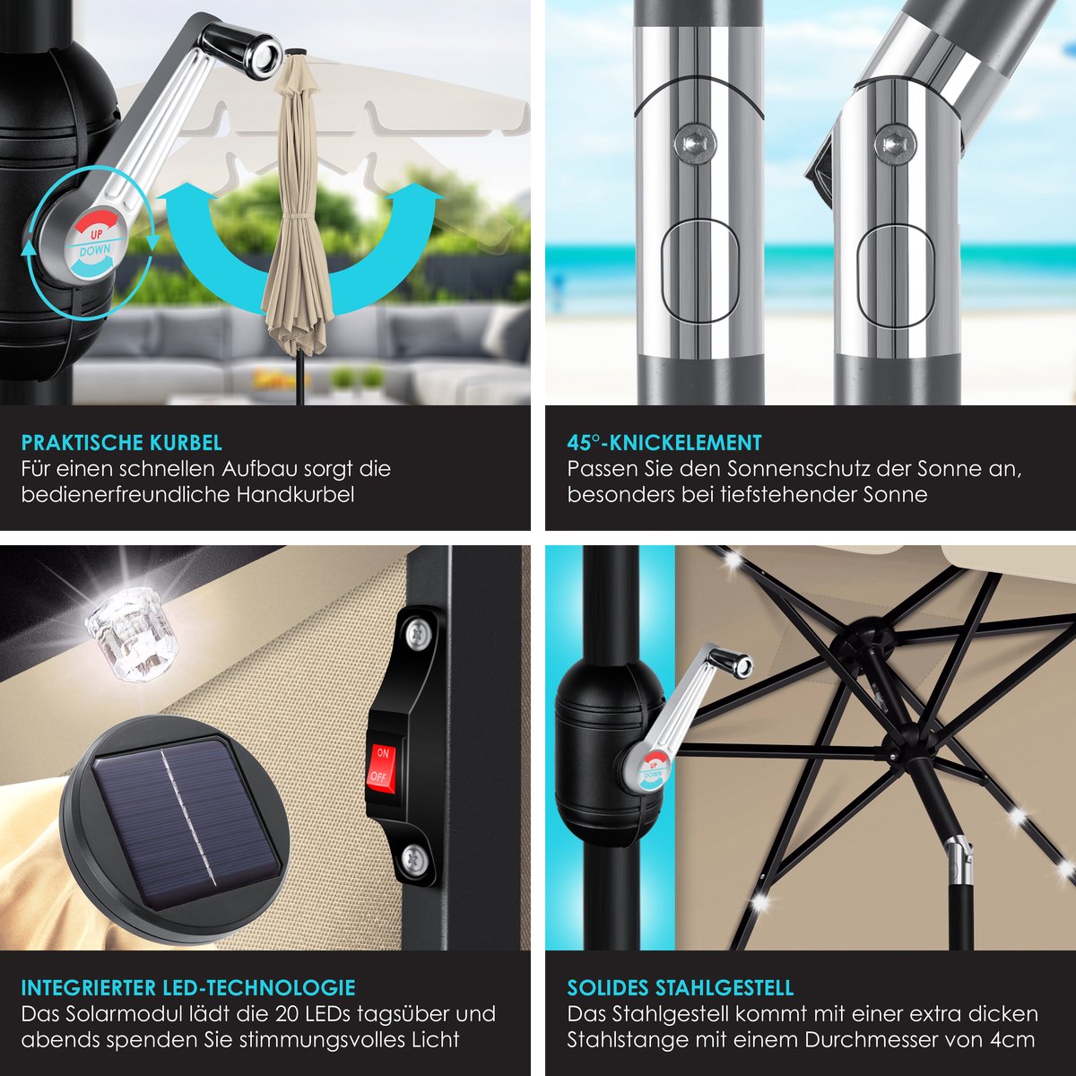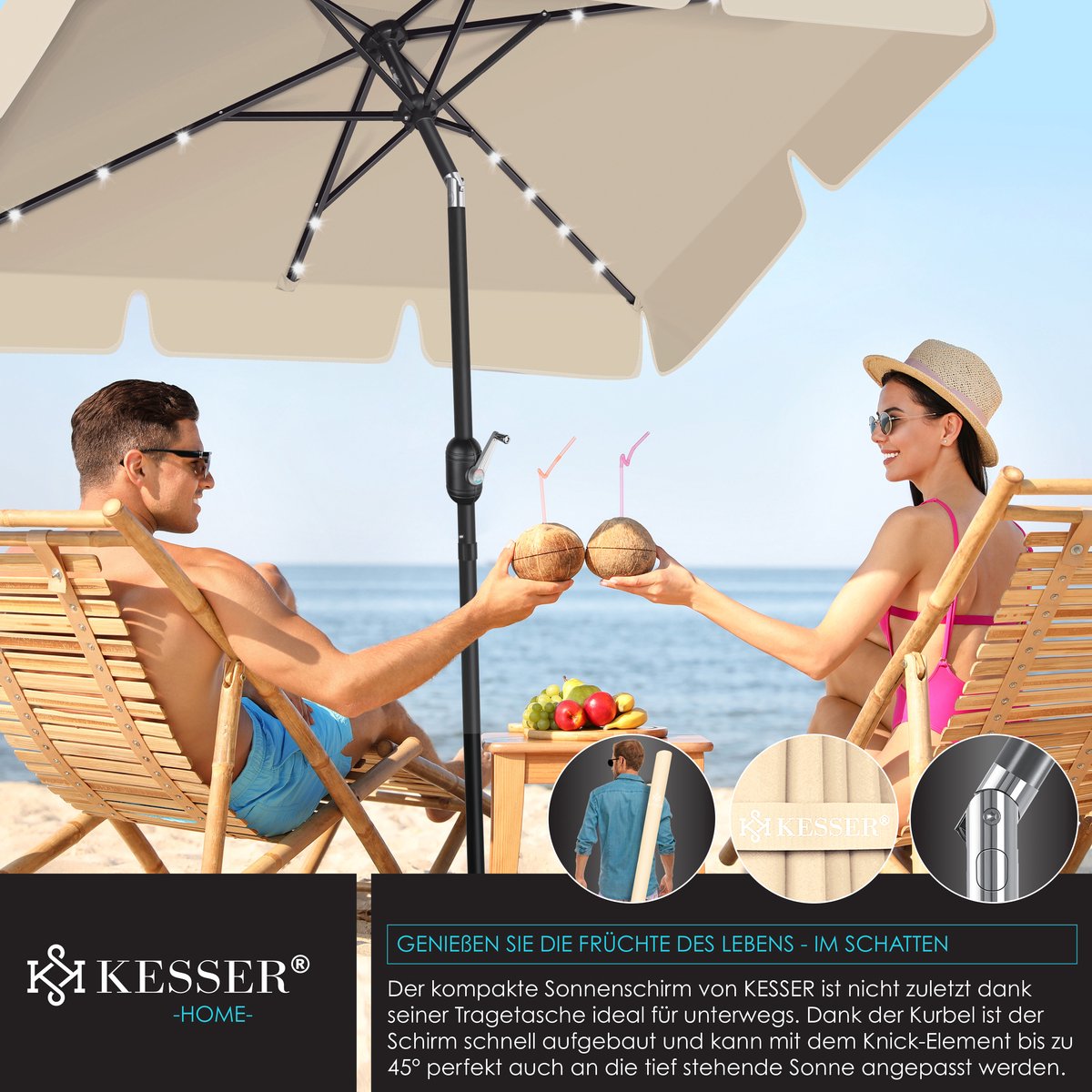 KESSER parasol LED met geïntegreerde knikverbinding voor ideale schaduw, stabiele roestvrijstalen en robuuste steunen, water- en UV-bescherming, opladen met daglicht dankzij geïntegreerde zonnemodule, incl. 2in1 hoes & tas