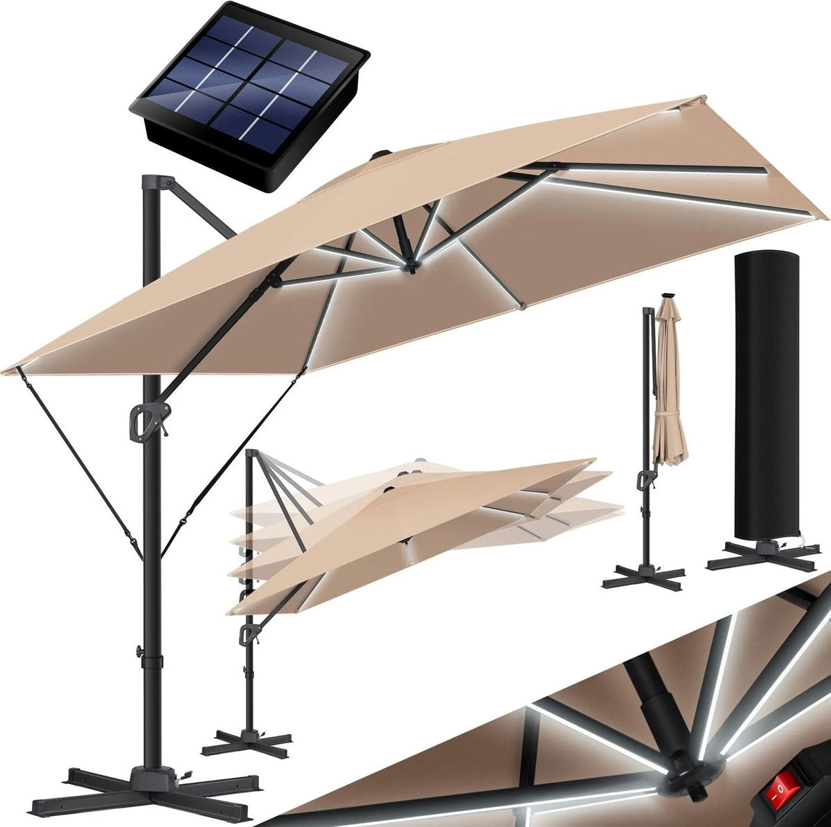 Optionele LED-verlichting: De LED-verlichting zorgt voor sfeervolle zomeravonden en werkt op een zonnepaneel. Hierdoor zijn er geen elektriciteitsaansluitingen nodig en bespaart u geld.