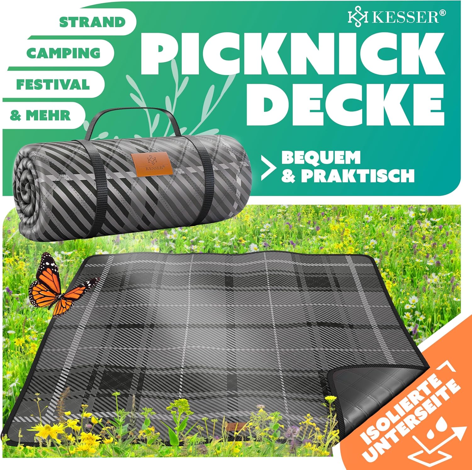 • Gemakkelijk te reinigen en te reinigen: geen ergernis meer met vuile picknickdekens. De KESSER picknickdeken kan eenvoudig in de wasmachine worden gewassen of met water worden afgespoeld. Zo blijft je deken altijd schoon en klaar voor gebruik voor je volgende outdoor-avontuur.