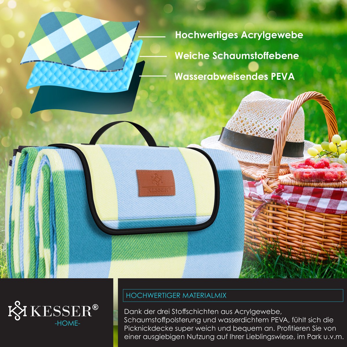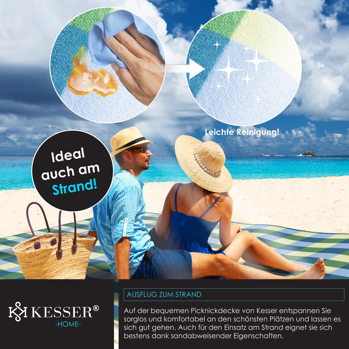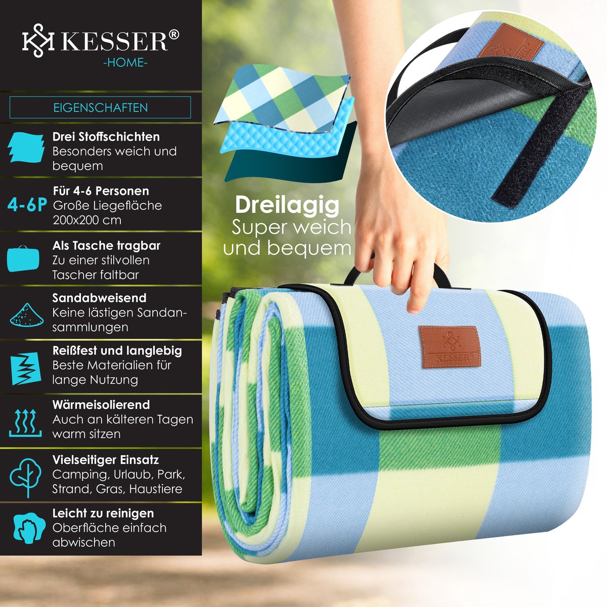 KESSER Picknickdeken van drie warmte-isolerende stoflagen, gemakkelijk te reinigen en bestand tegen zand en water, bijzonder groot ligoppervlak voor 4-6 personen, scheurvaste en duurzame materialen, flexibel en veelzijdig inzetbaar en opvouwbaar tot een draagtas