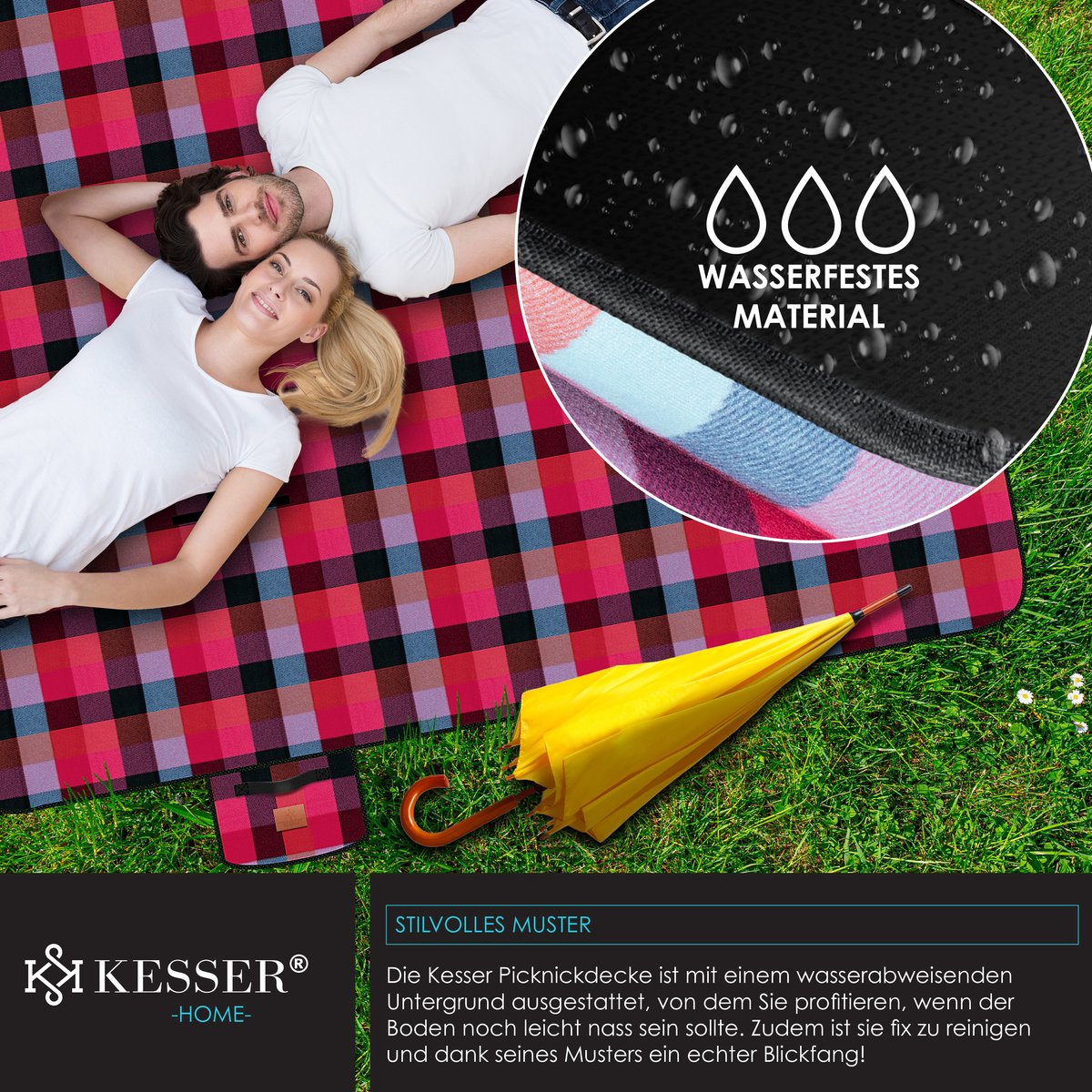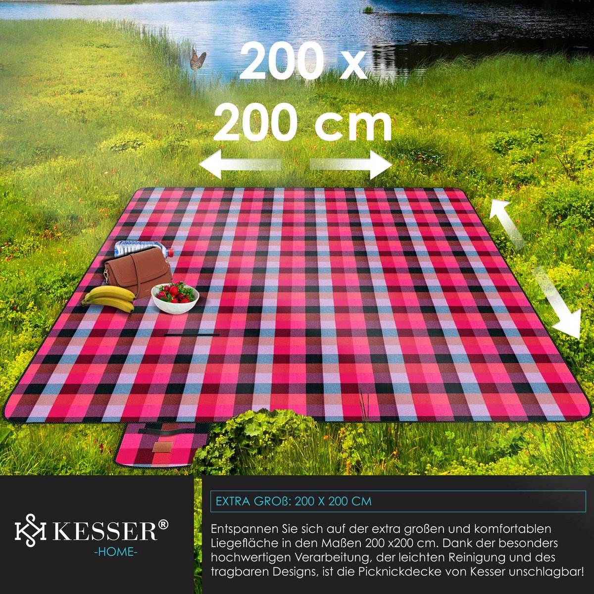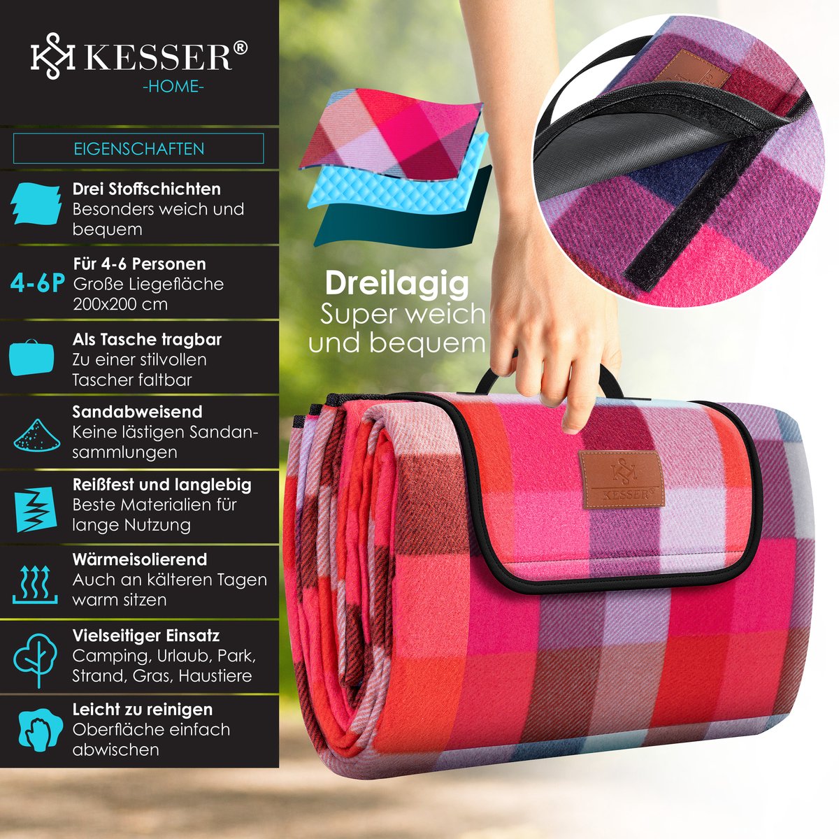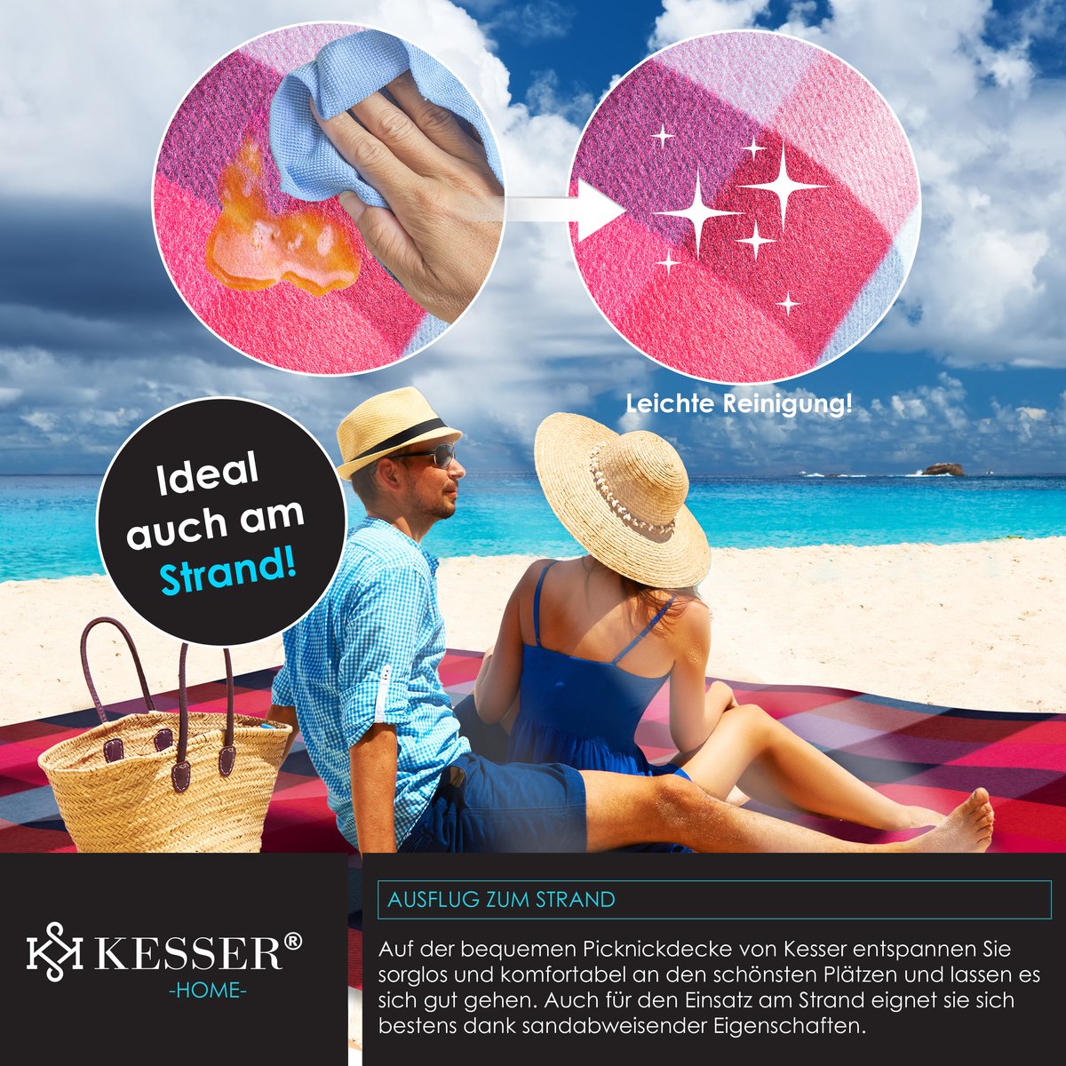 KESSER Picknickdeken van drie warmte-isolerende stoflagen, gemakkelijk te reinigen en bestand tegen zand en water, bijzonder groot ligoppervlak voor 4-6 personen, scheurvaste en duurzame materialen, flexibel en veelzijdig inzetbaar en opvouwbaar tot een draagtas