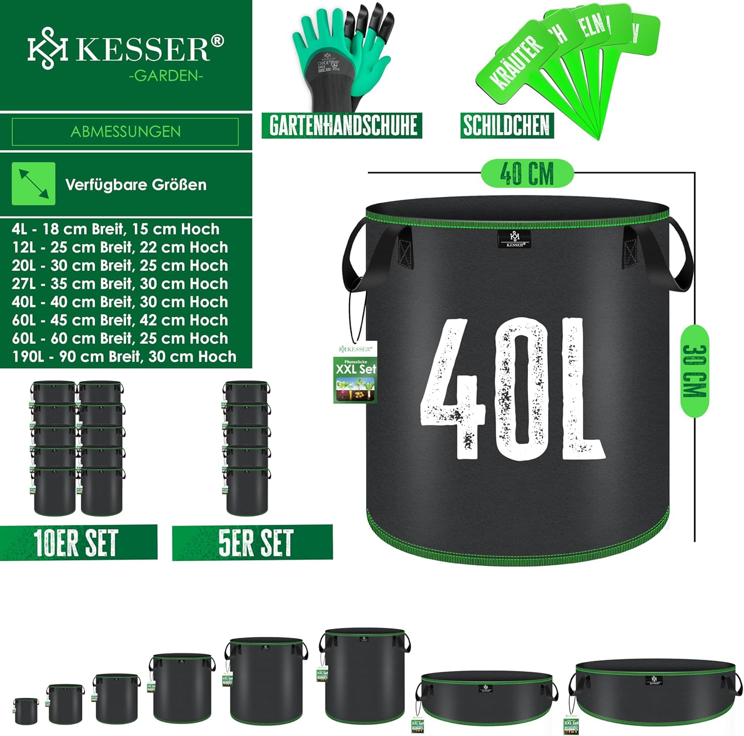 KESSER® 5x Plantenzak - 40L - Plantenzakken - Zwart