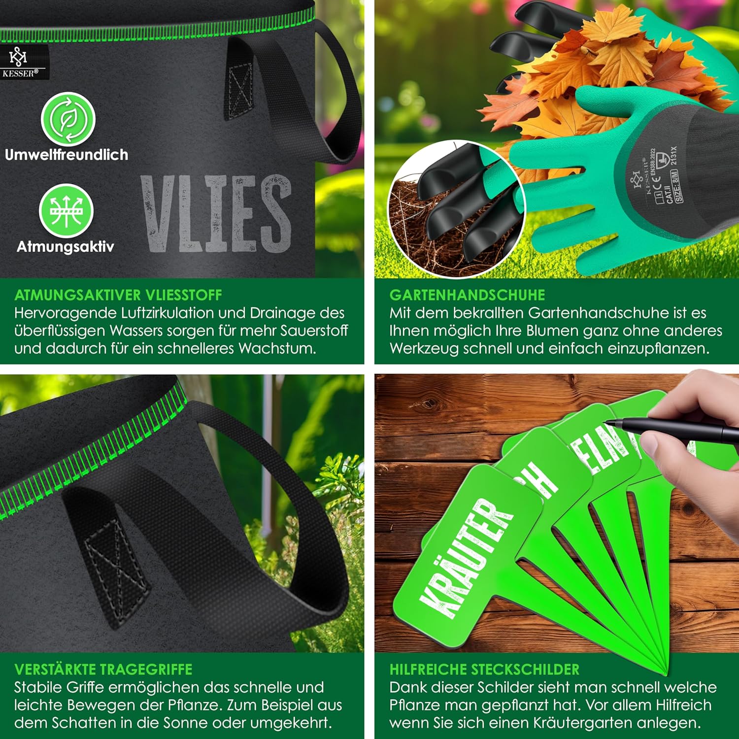 • Milieuvriendelijke kwaliteit voor duurzaamheid: de plantenzak is gemaakt van milieuvriendelijke materialen die een duurzaam gebruik garanderen. Je kunt je tuin onderhouden en daarbij een goed geweten hebben, want dit product ontziet het milieu en draagt bij aan een duurzamere levensstijl. Kies de KESSER tuinplantenzak en geef een teken van milieubescherming en duurzaamheid in je tuin.