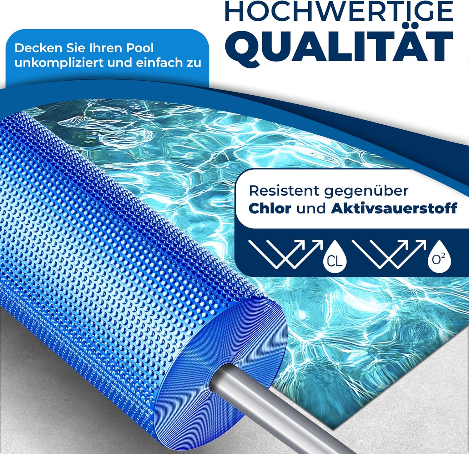 Verkrijgbaar in verschillende maten. Efficiënte warmteopslag. Compatibel met vele zwembaden, UV- en weerbestendig, chloorbestendig. Milieuvriendelijk. Vuilinvalbescherming, vermindert waterverdamping, vermindert verwarmingskosten, oprolbaar (zwembadroller van Kess), snel opwarmen van 3-7 °C