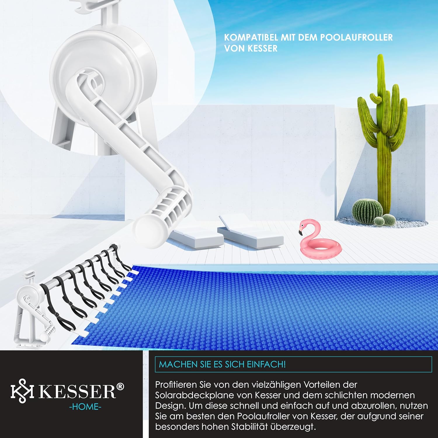 • Compatibel met zwembaden: maak het jezelf heel eenvoudig en profiteer van de vele voordelen van het beschermzeil van KESSER en het eenvoudige moderne design. Om deze snel en eenvoudig op en af te rollen raden wij je onze zwembadhaspel van het merk Kesser aan, die door zijn bijzonder hoge stabiliteit overtuigt.