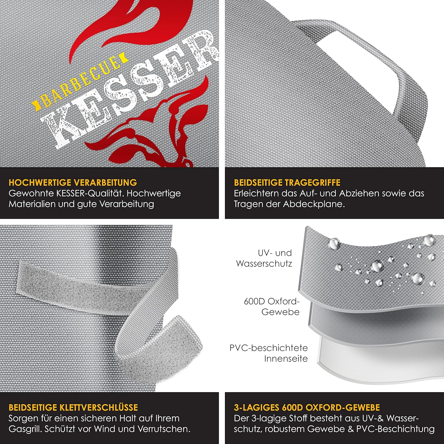 Kesser barbecuehoes voor vele gangbare grills, scheurbestendig en robuust materiaal, waterafstotend en uv-bestendig, veilige grip dankzij verstelbare klittenbandsluitingen, eenvoudige montage en snelle afdekking van je barbecue