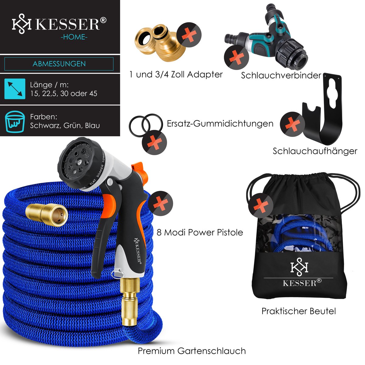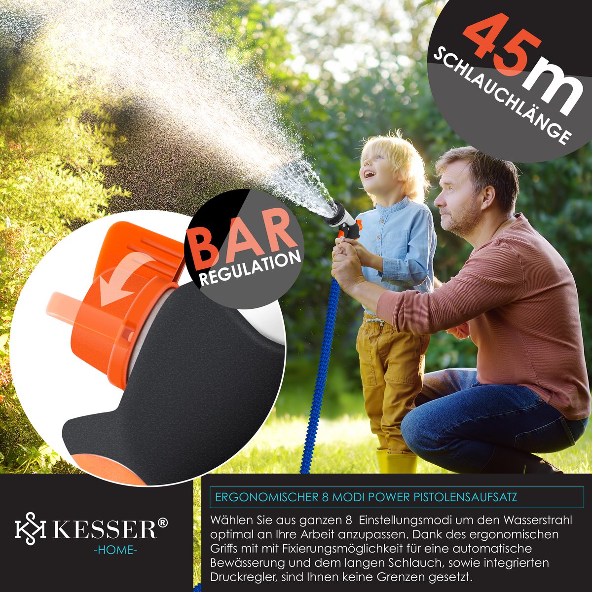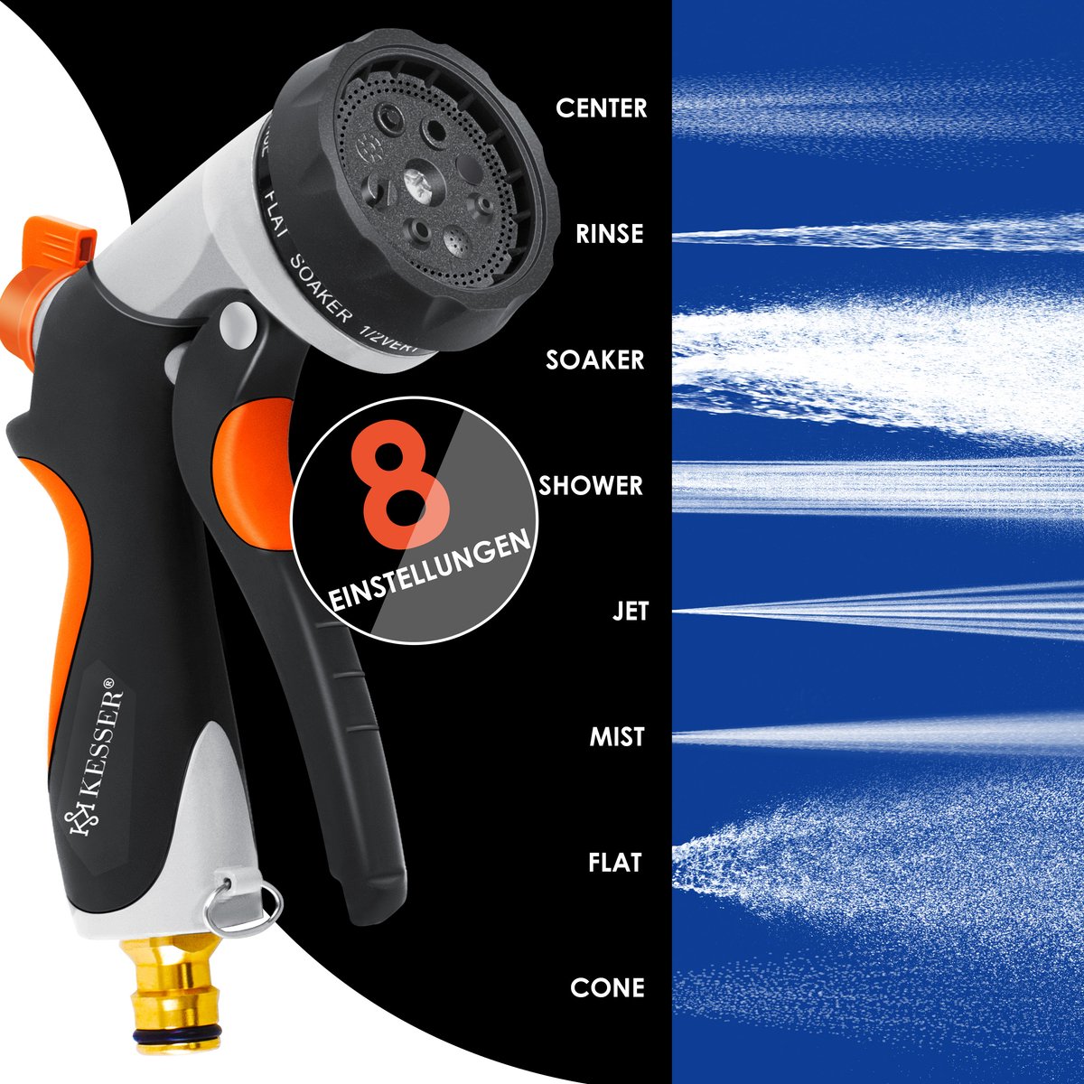 KESSER Tuinslang Premium met Krachtige Spuitpistool en 8 Straalstanden, inclusief Wandbevestigingsaccessoires, geschikt voor druk tot 10 bar, veelzijdig inzetbaar, UV- en weerbestendig dankzij roestvrij messing, inclusief drukregelaar en veel accessoires