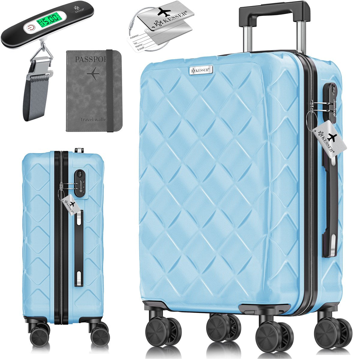 • Robuuste hardcase en maximale bescherming: de hoogwaardige ABS-harde schaal maakt de koffer extreem goed bestand tegen stoten, krassen en invloeden van buitenaf. Zo blijft je bagage ook op turbulente reizen optimaal beschermd. Of het nu in het vliegtuig, de trein of de auto is, met KESSER reis je zorgeloos en veilig.