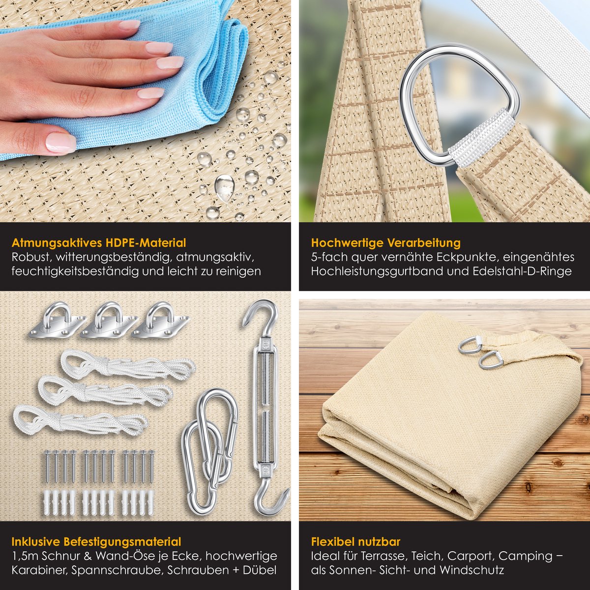 KESSER zonnescherm van robuust en weerbestendig HDPE, ademend doek voorkomt warmteophoping, schaduwfactor van ca. 85%, veelzijdig te gebruiken voor perfecte schaduw, ongecompliceerde montage