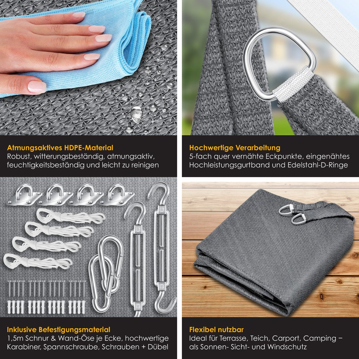 KESSER zonnescherm van robuust en weerbestendig HDPE, ademend doek voorkomt warmteophoping, schaduwfactor van ca. 85%, veelzijdig te gebruiken voor perfecte schaduw, ongecompliceerde montage