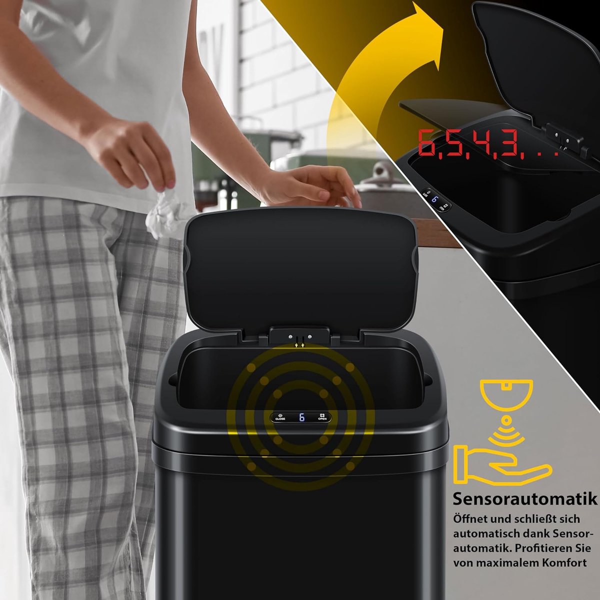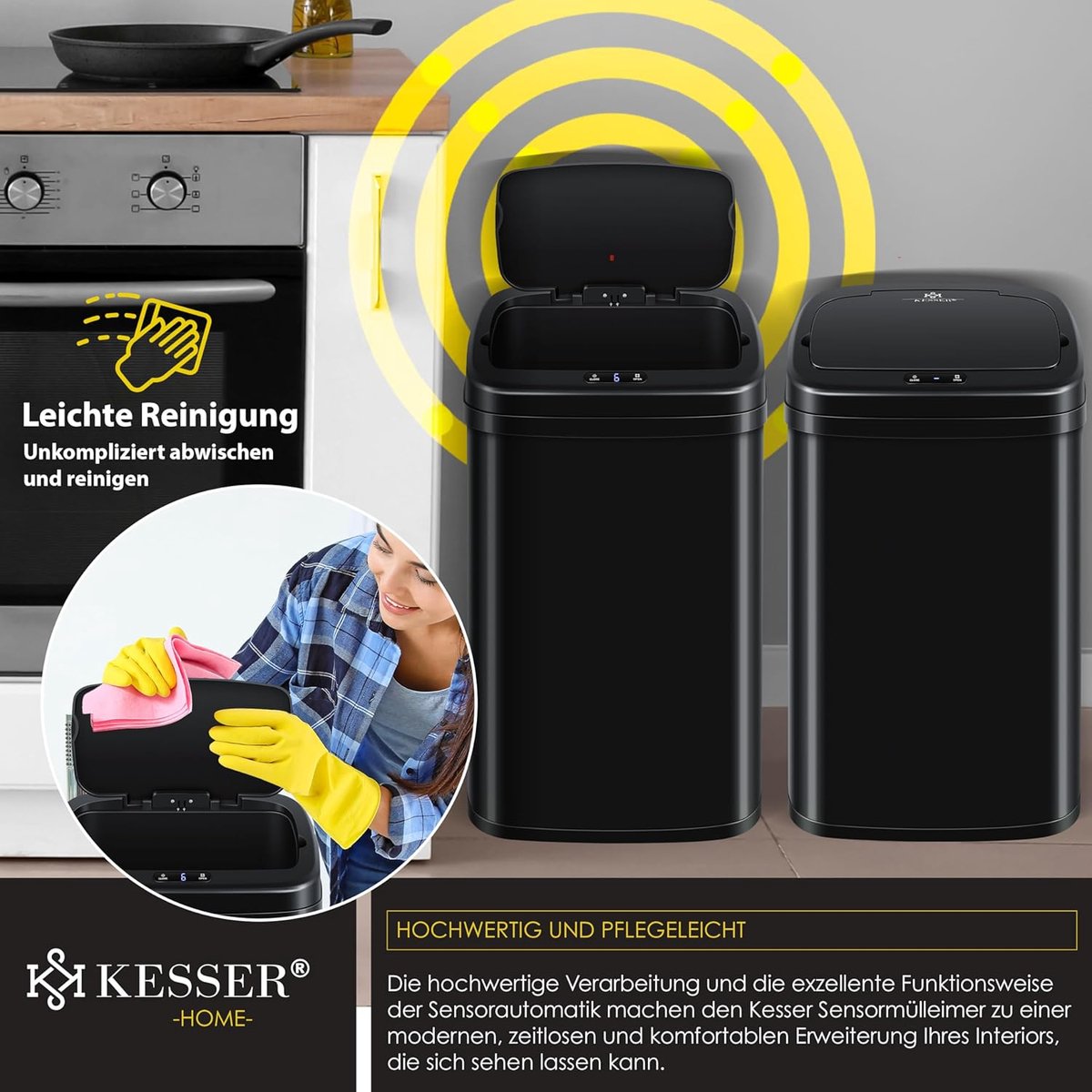 De KESSER Premium sensorafvalbak scoort met een baanbrekend automatisch sensorsysteem - één aanraking is voldoende voor moeiteloos en hygiënisch openen en sluiten. Deze innovatieve functie vereenvoudigt het verwijderingsproces en maakt het aangenaam gemakkelijk. sensor automatisch