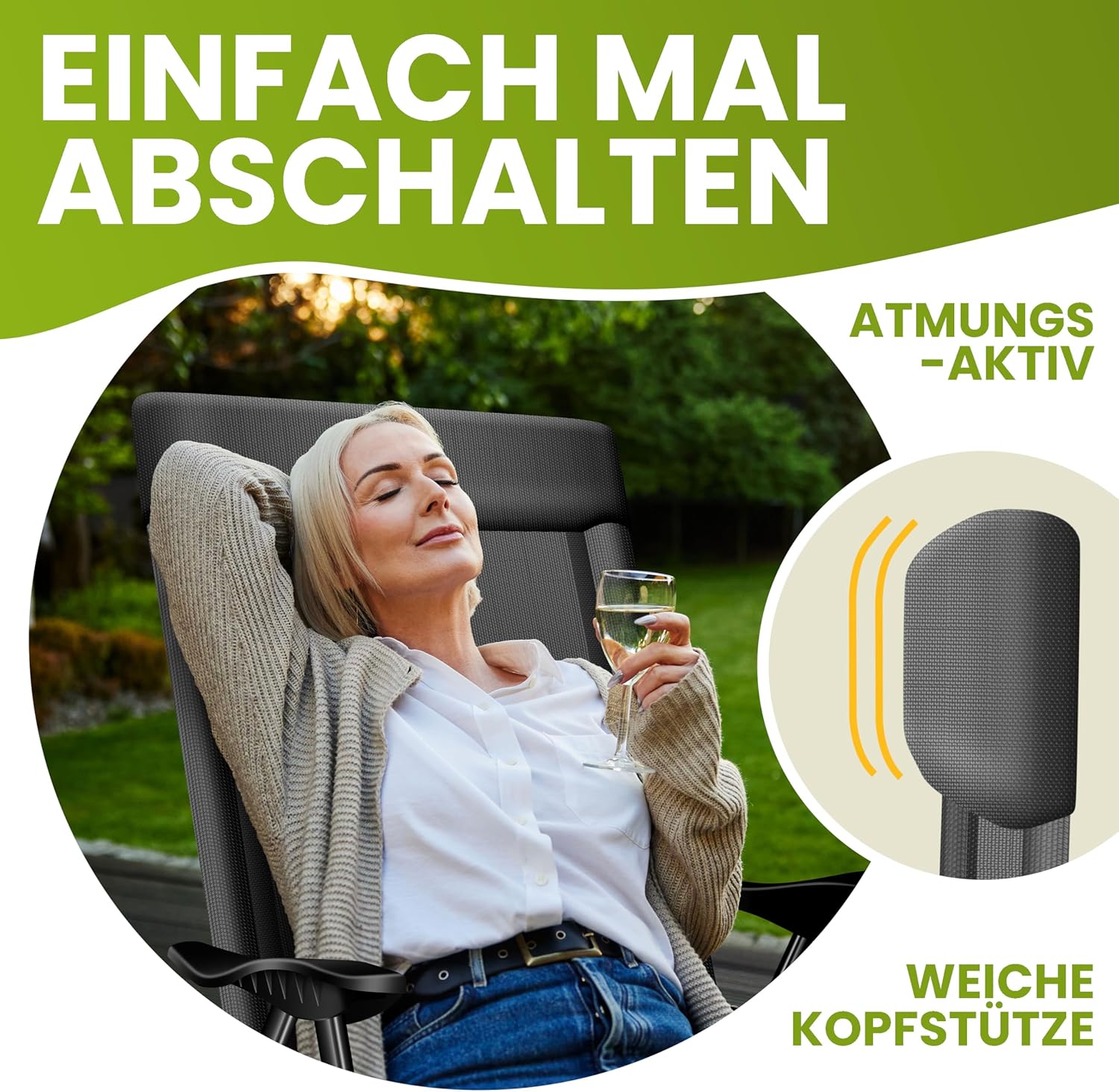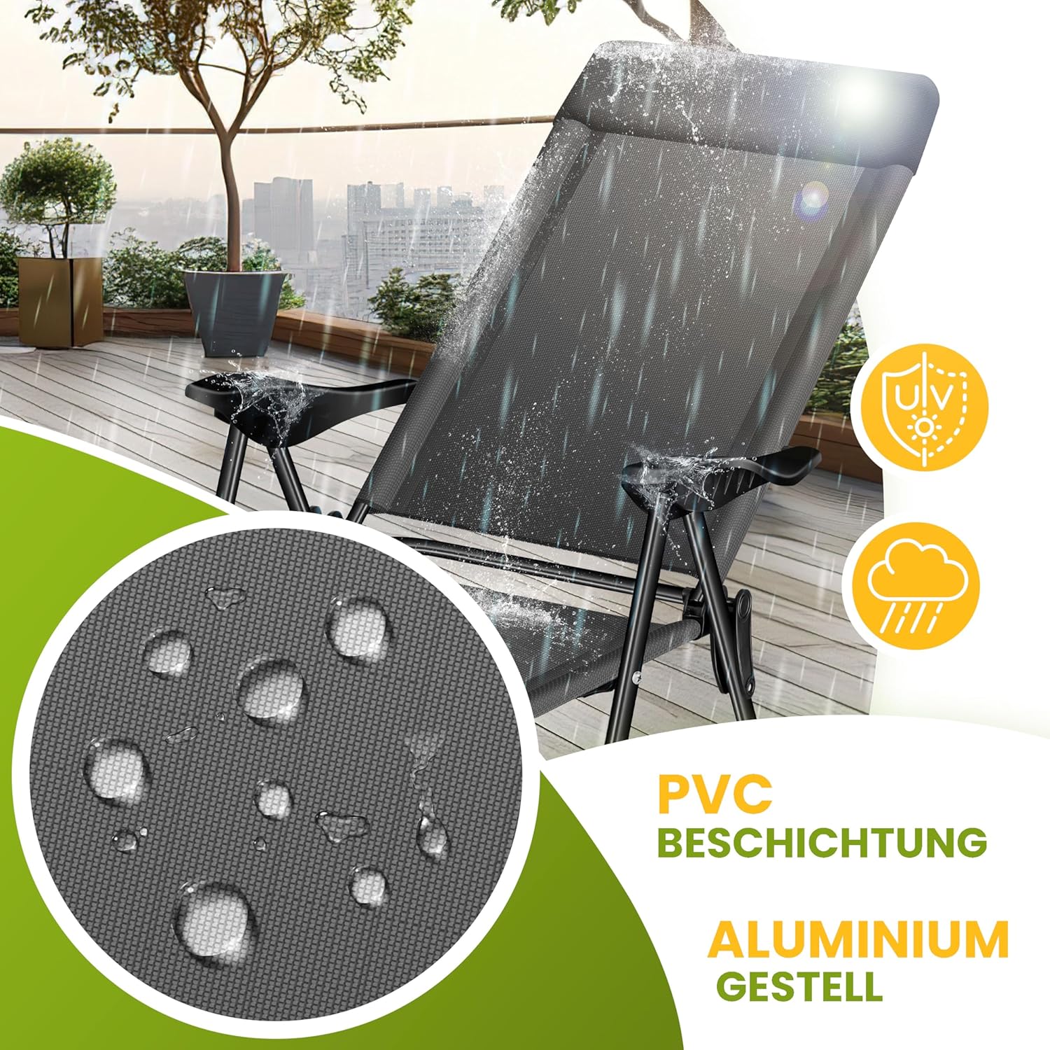 7-voudig verstelbaar: hoogwaardig materiaal, stabiel en duurzaam, eenvoudige vouwfunctie, weerbestendig, ergonomische armleuning, comfortabele hoofdsteun, hoekversterking, ideaal voor tuin, balkon of terras. Perfect geschikt voor zonnen