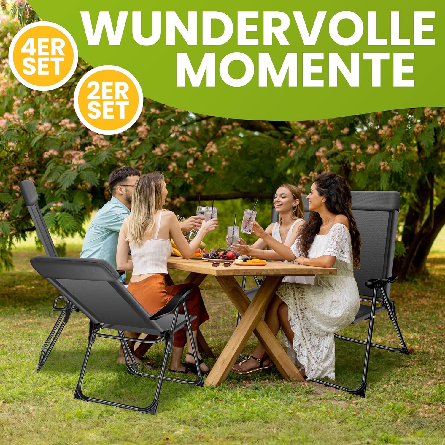 Iedereen die een tuin, balkon of terras heeft, heeft naast de bijpassende tuintafel ook een geschikte zitgelegenheid nodig. Onze tuinstoel Basic set van 2 biedt de ideale gelegenheid om de tijd met familie of vrienden zo aangenaam mogelijk te maken. Gewoon achterover leunen en ontspannen. - Of het nu bij het grillen met je dierbaren is of gewoon bij het relaxen of zonnen - met onze ligstoel zijn er talrijke toepassingsmogelijkheden voor de perfecte zomer