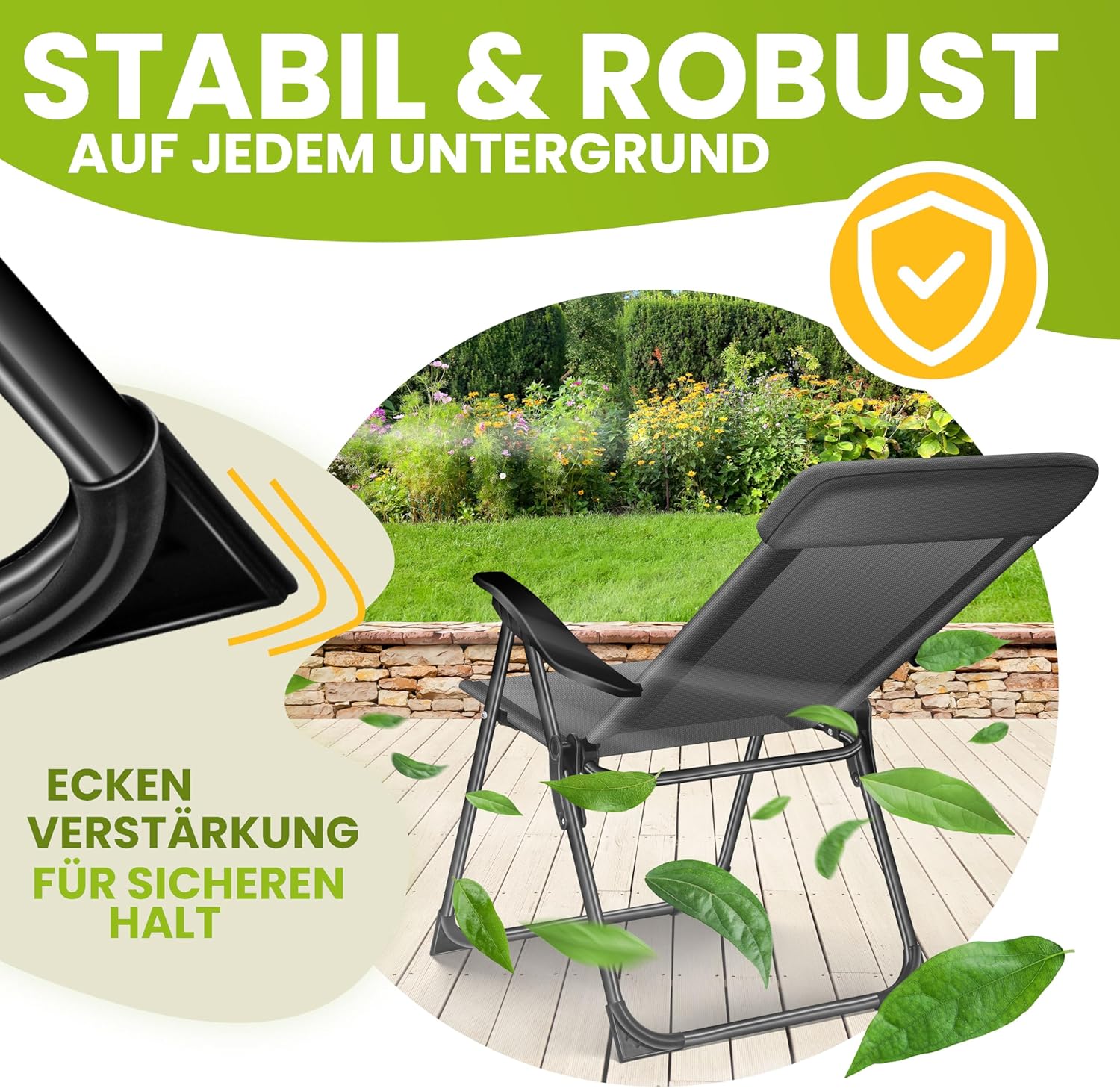 Iedereen die een tuin, balkon of terras heeft, heeft naast de bijpassende tuintafel ook een geschikte zitgelegenheid nodig. Onze Basic tuinstoel van 2 biedt de ideale gelegenheid om de tijd met familie of vrienden aangenaam te maken. Achterover leunen en ontspannen. - Of het nu bij het grillen met je dierbaren is of gewoon bij het relaxen of zonnen, met onze ligstoel zijn talrijke toepassingsmogelijkheden