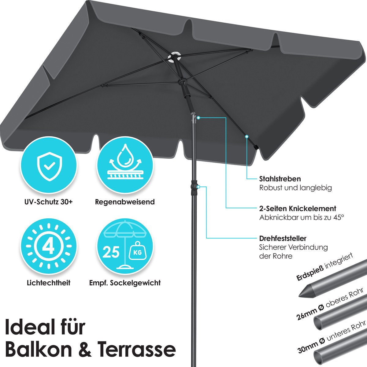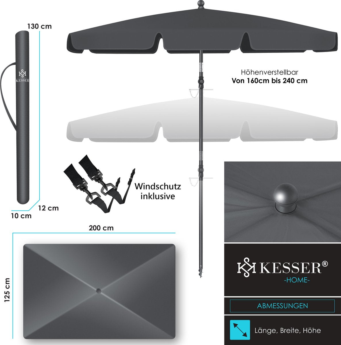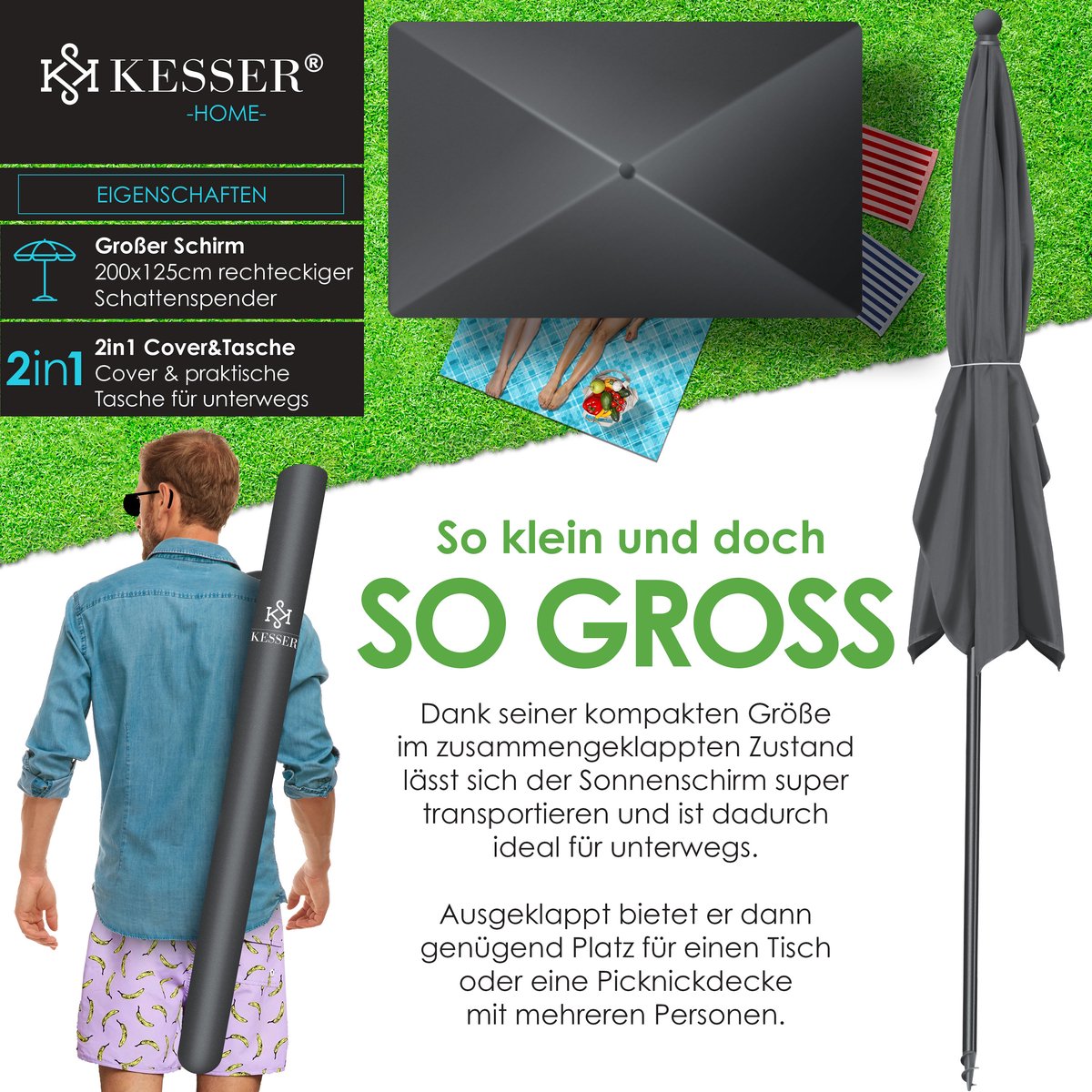 KESSER® Rechthoekige Parasol Inclusief 2-in-1 Hoes & Draagtas Tuinparasol Terrasparasol | Parasol 200 × 125cm voor Balkon, Tuin & Terras | Verstelbare Hoek en Hoogte