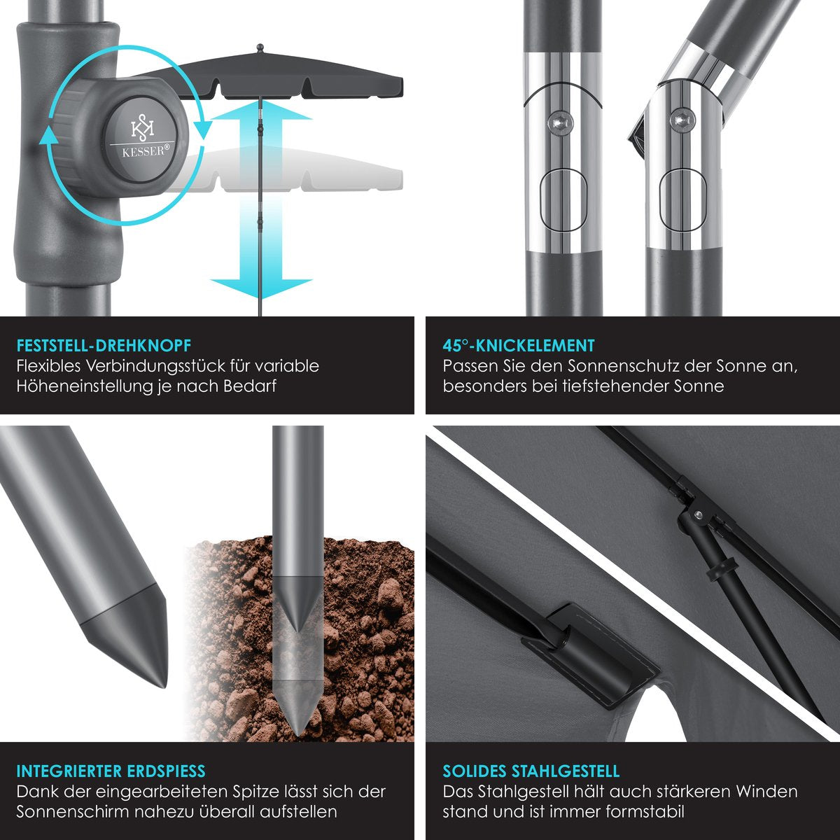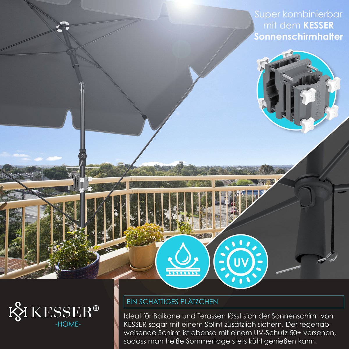 OPTIMALE UV-BESCHERMING: De zomer is binnen handbereik, een wolkenloze lucht en de temperaturen schieten omhoog. U wilt van het weer genieten, maar u wilt zich niet blootstellen aan onnodige UV-straling. Met de KESSER parasol beschermt u uzelf en uw gasten tegen directe blootstelling aan UV-straling en creëert u tegelijkertijd een schaduwrijk plekje op uw balkon, terras of in de tuin. Pak een koel drankje, een goed boek en geniet onbezorgd van de dag met onze geweldige schaduwbrenger.