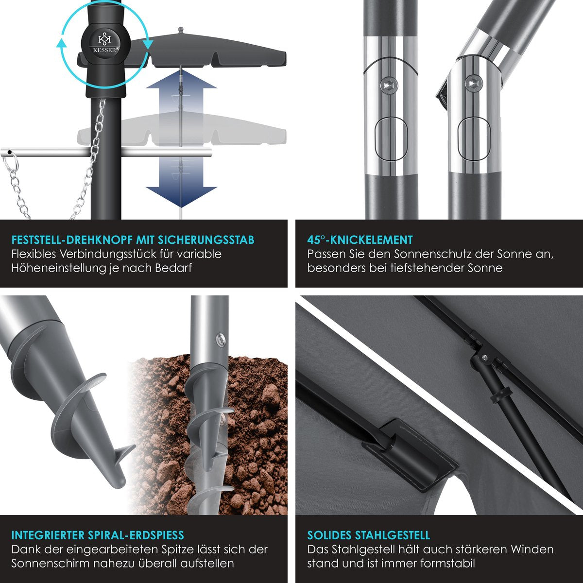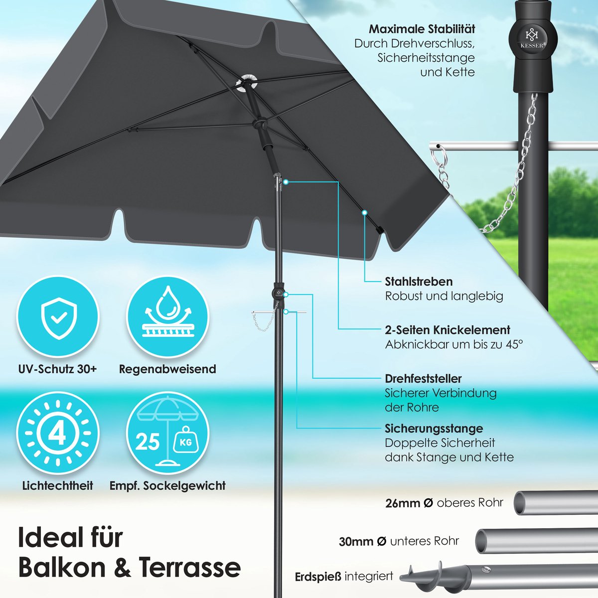 KESSER Rechthoekige Parasol - Zeer Robuust, Met UV-Bescherming, 2-in-1 Hoes en Tas, Geïntegreerde Grondpen, Draaivergrendeling en Verstelbare Hoek tot 45°