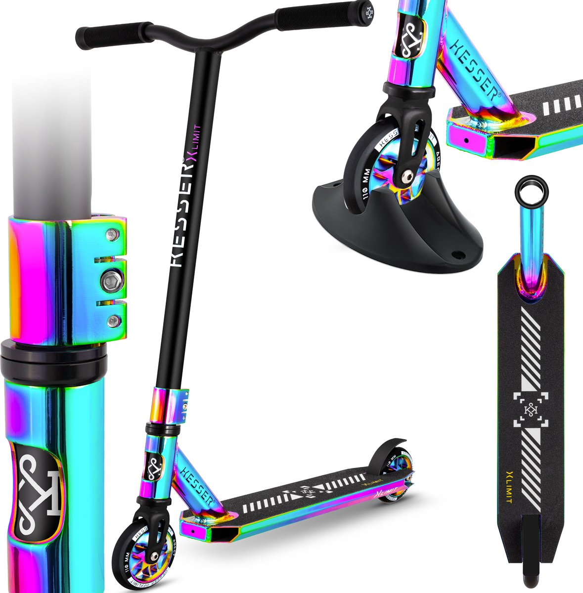 KESSER® Stuntstep X-Limit-Pro 360° Sturing Funscooter Stuntscooter met Standaard ABEC 9 Kogellagers, 110 mm PU Wielen, Kickscooter Step voor Kinderen en Volwassenen