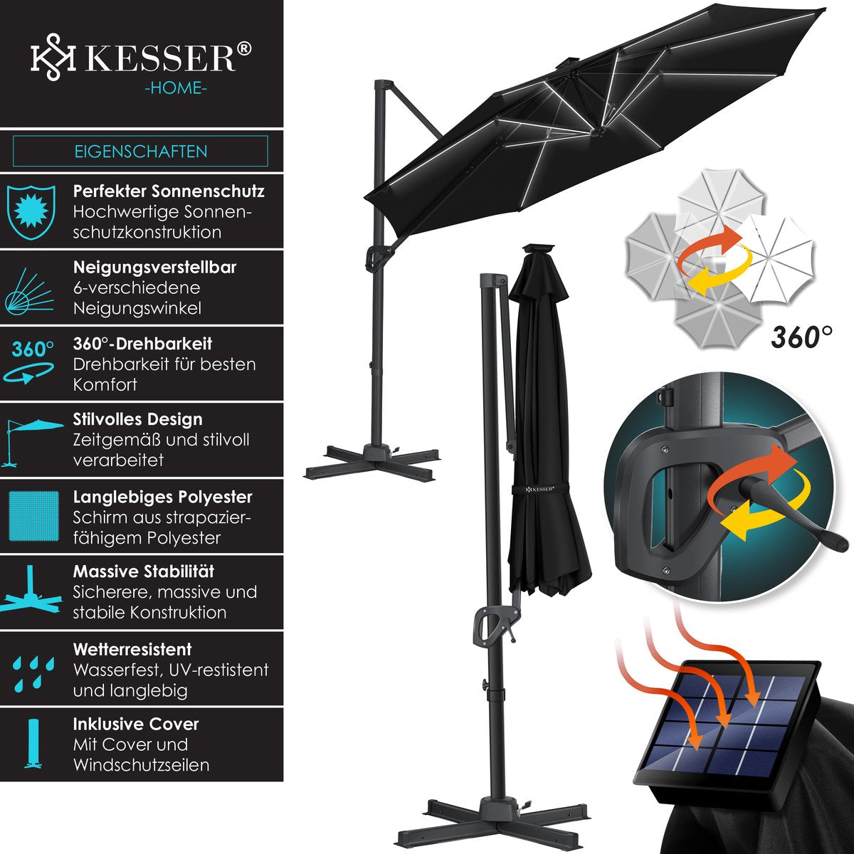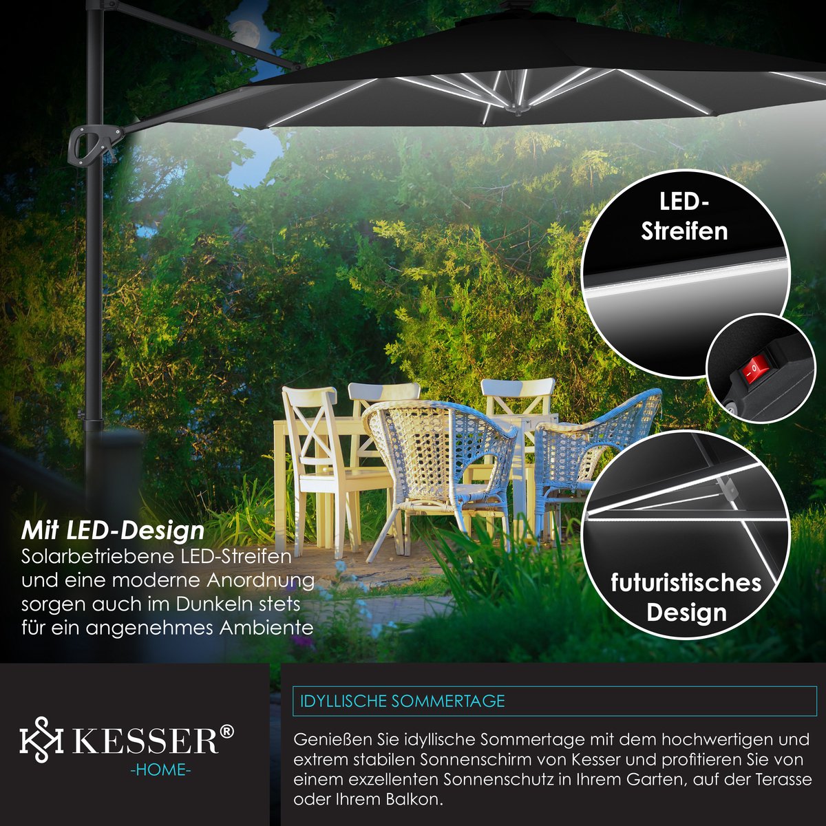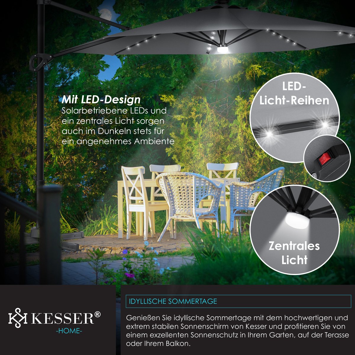 KESSER® Zweefparasol met voet - LED - Ø 3.3m - 360° Draaibaar  - Antraciet