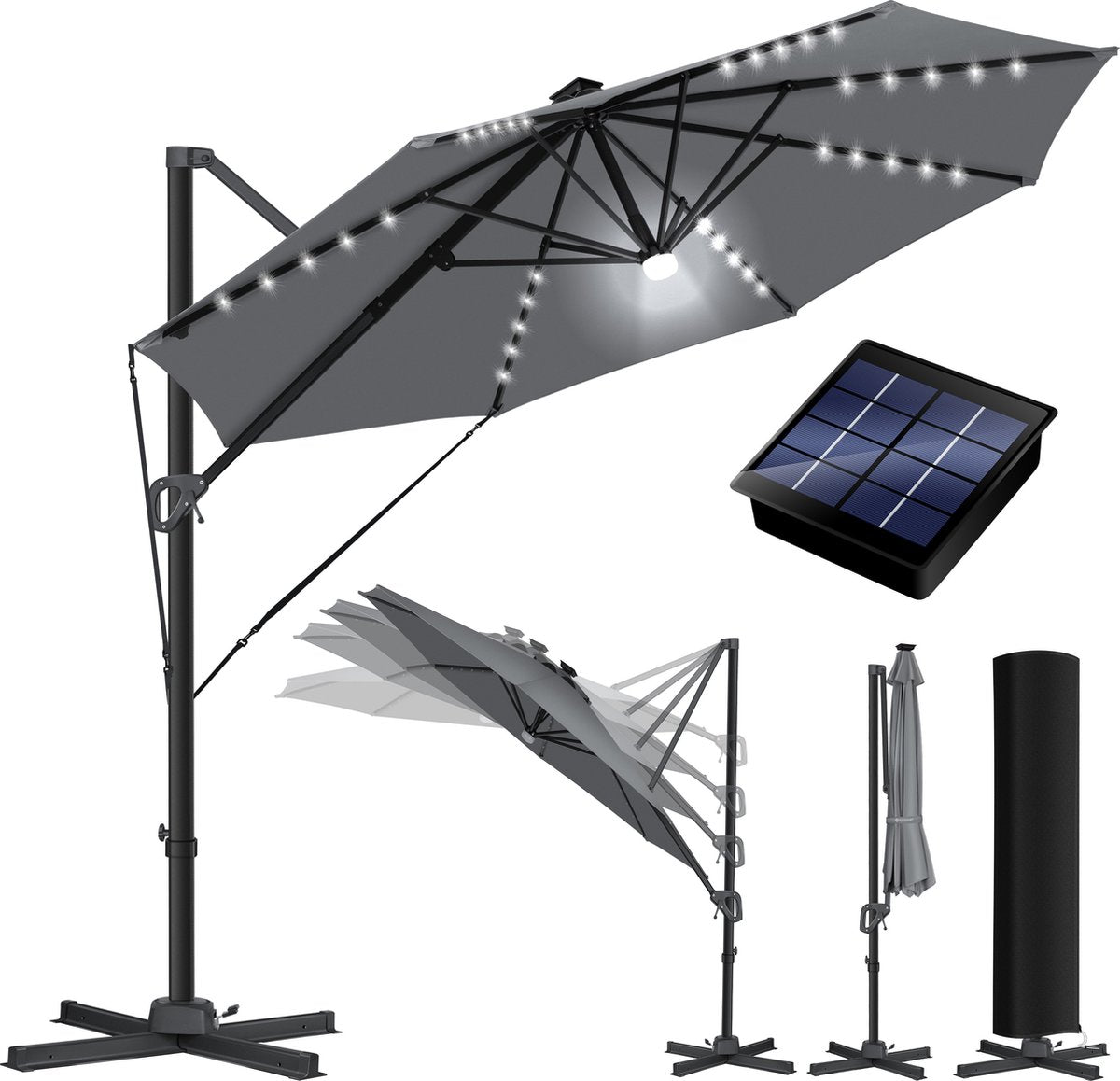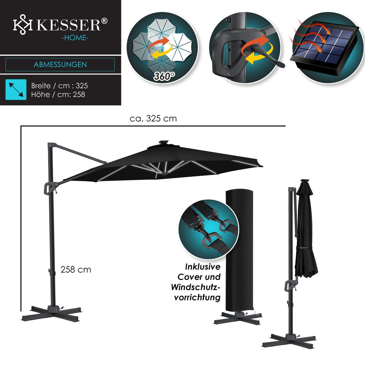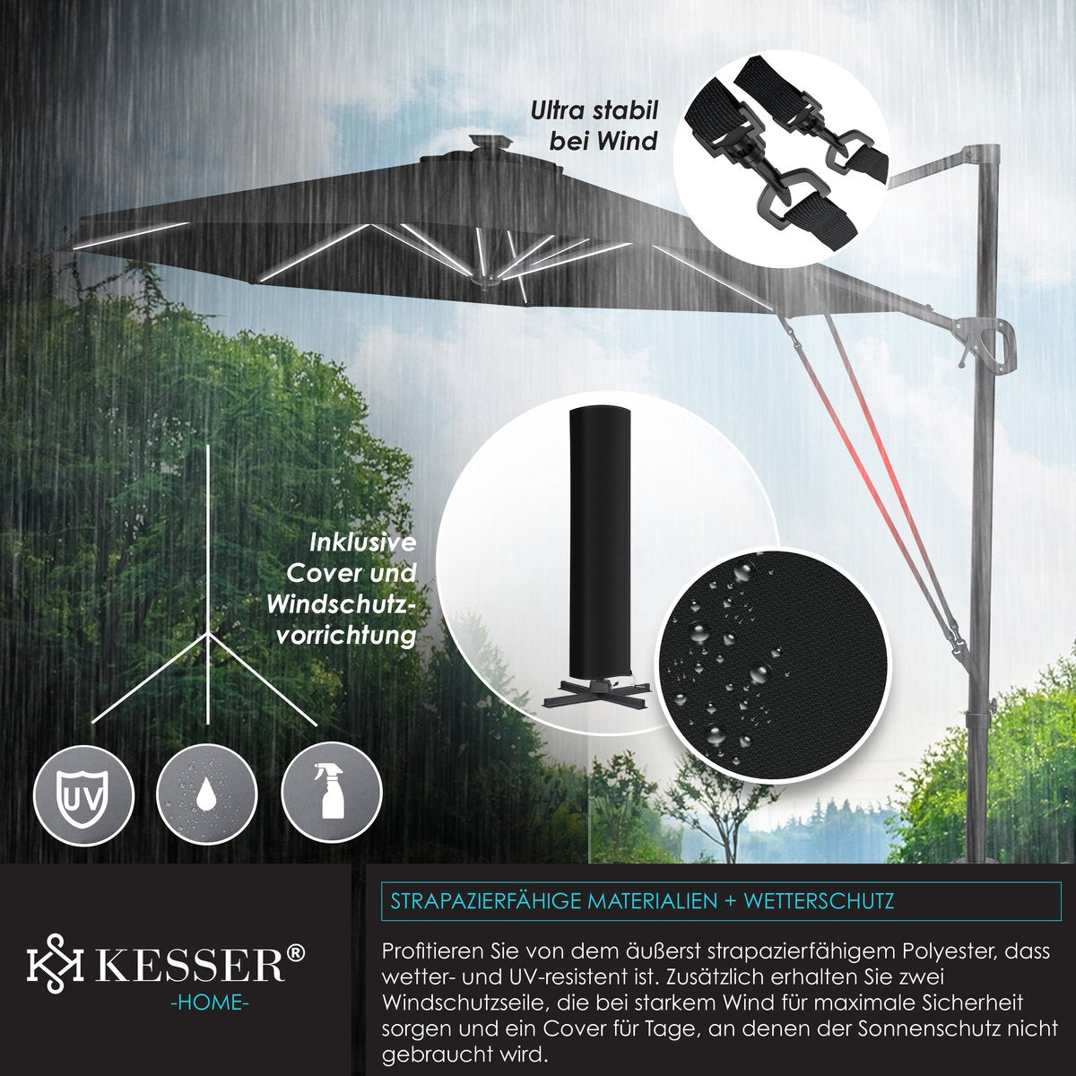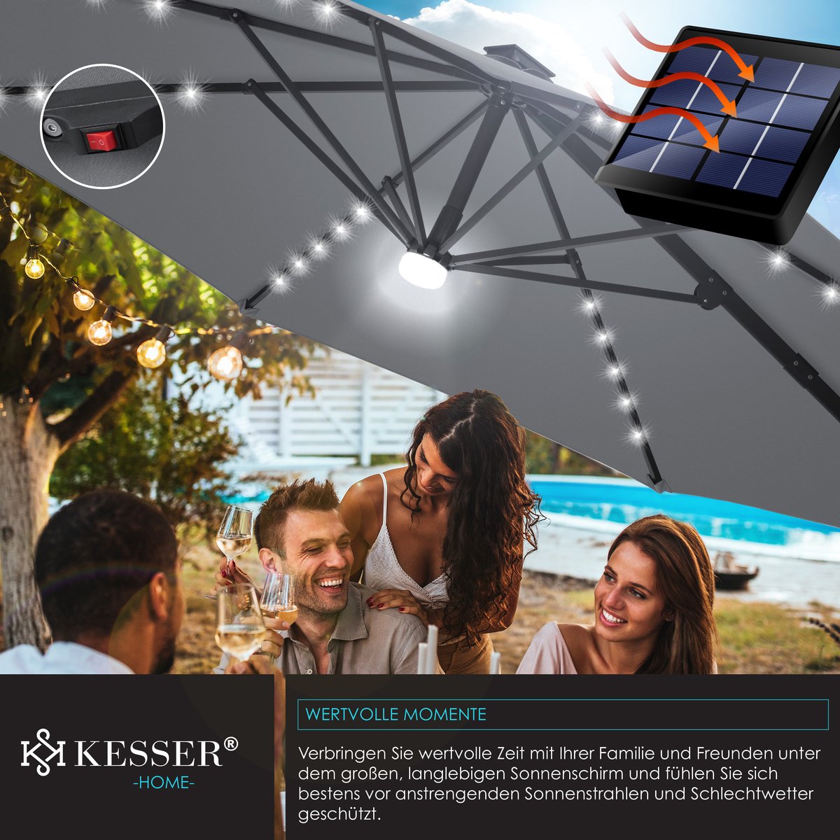 KESSER® Zweefparasol met voet - LED - Ø 3.3m - 360° Draaibaar  - Antraciet