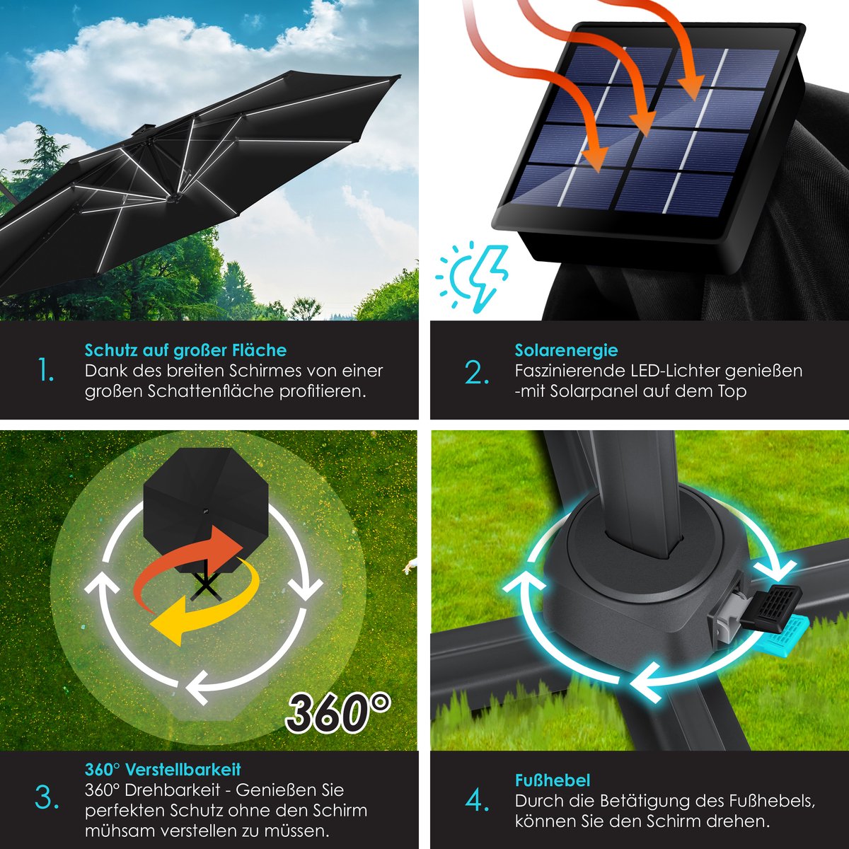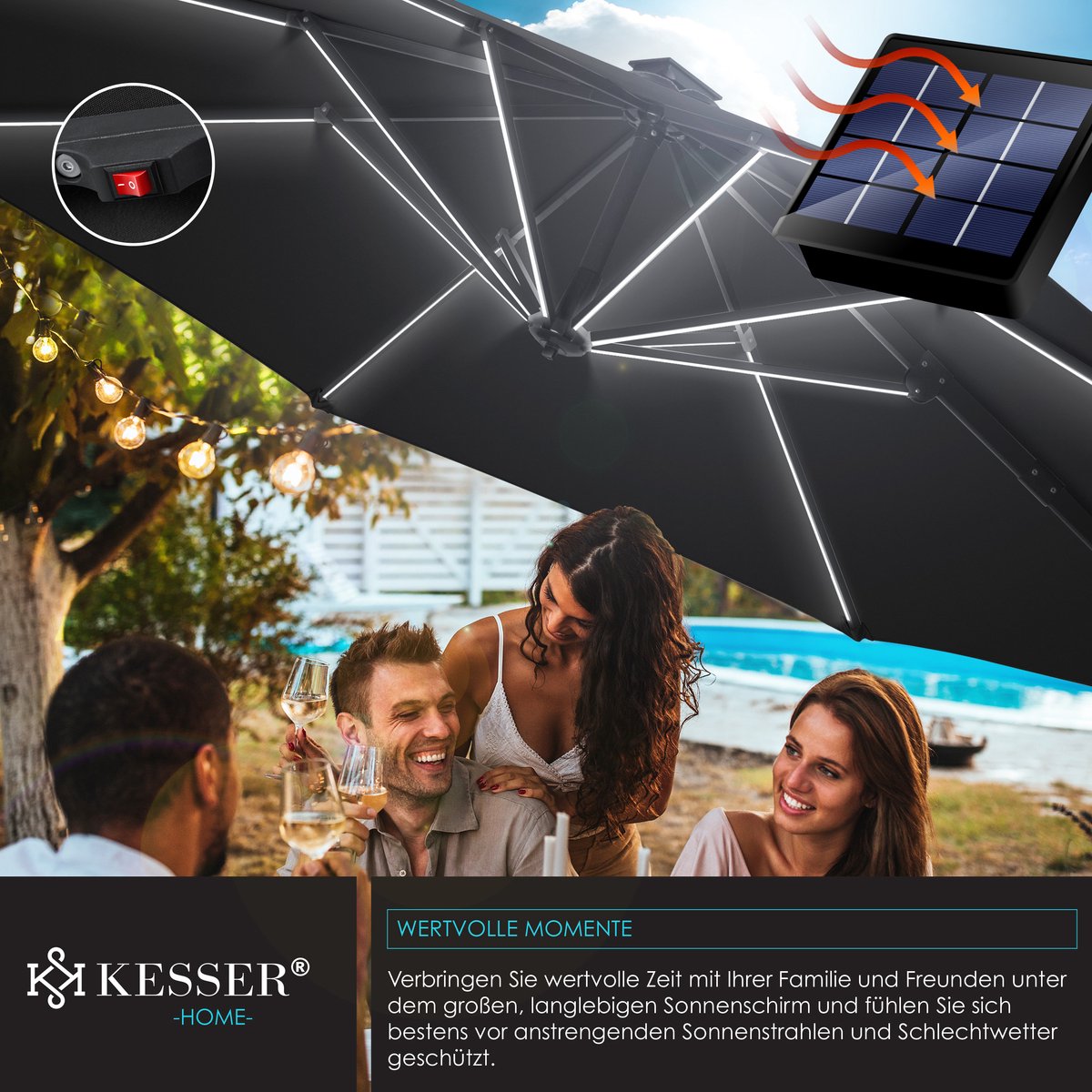 KESSER® Zweefparasol met voet - LED - Ø 3.3m - 360° Draaibaar - Antraciet