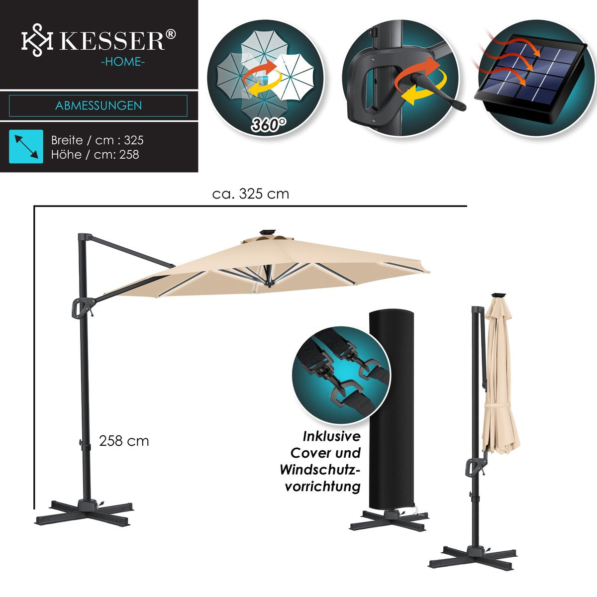 KESSER® Zweefparasol met voet - LED - Ø 3.3m - 360° Draaibaar - Beige
