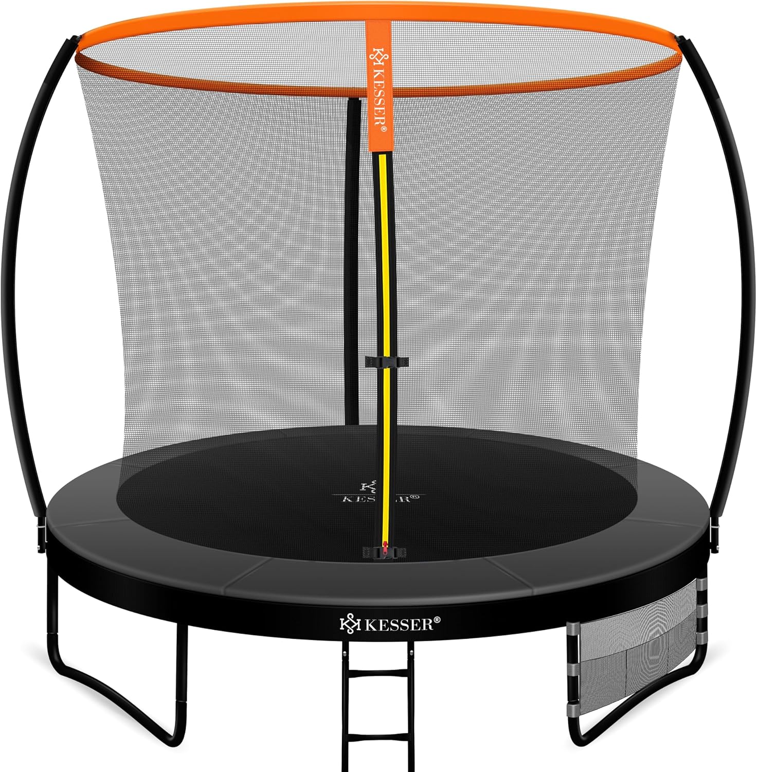 KESSER trampoline premium in modern pompoendesign, bijzonder veilig dankzij frameafstand en dubbel springplezier dankzij lage luchtweerstand, eenvoudige montage en hoge belastbaarheid, stabiel en verzinkt en roestbestendig staal.