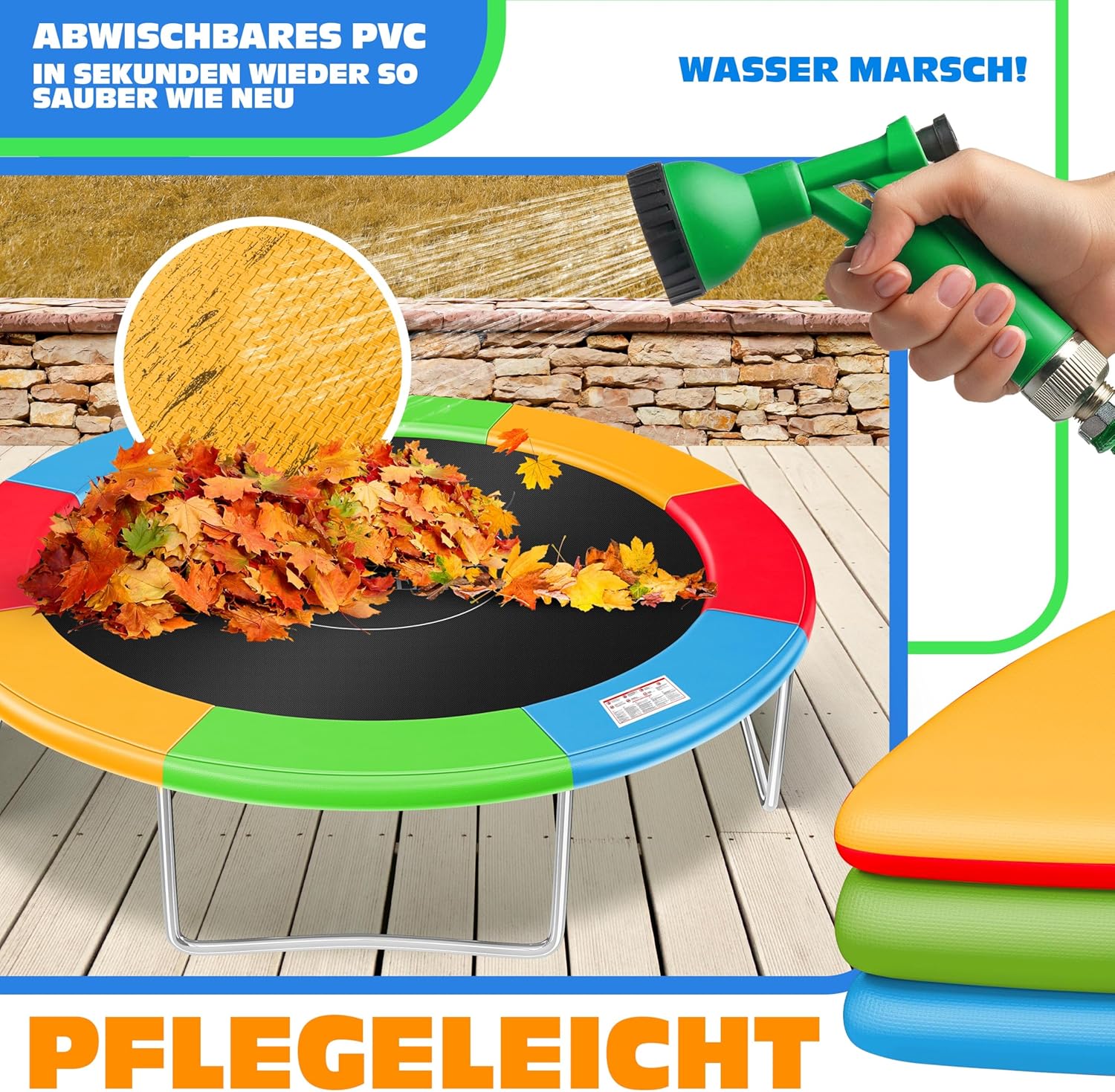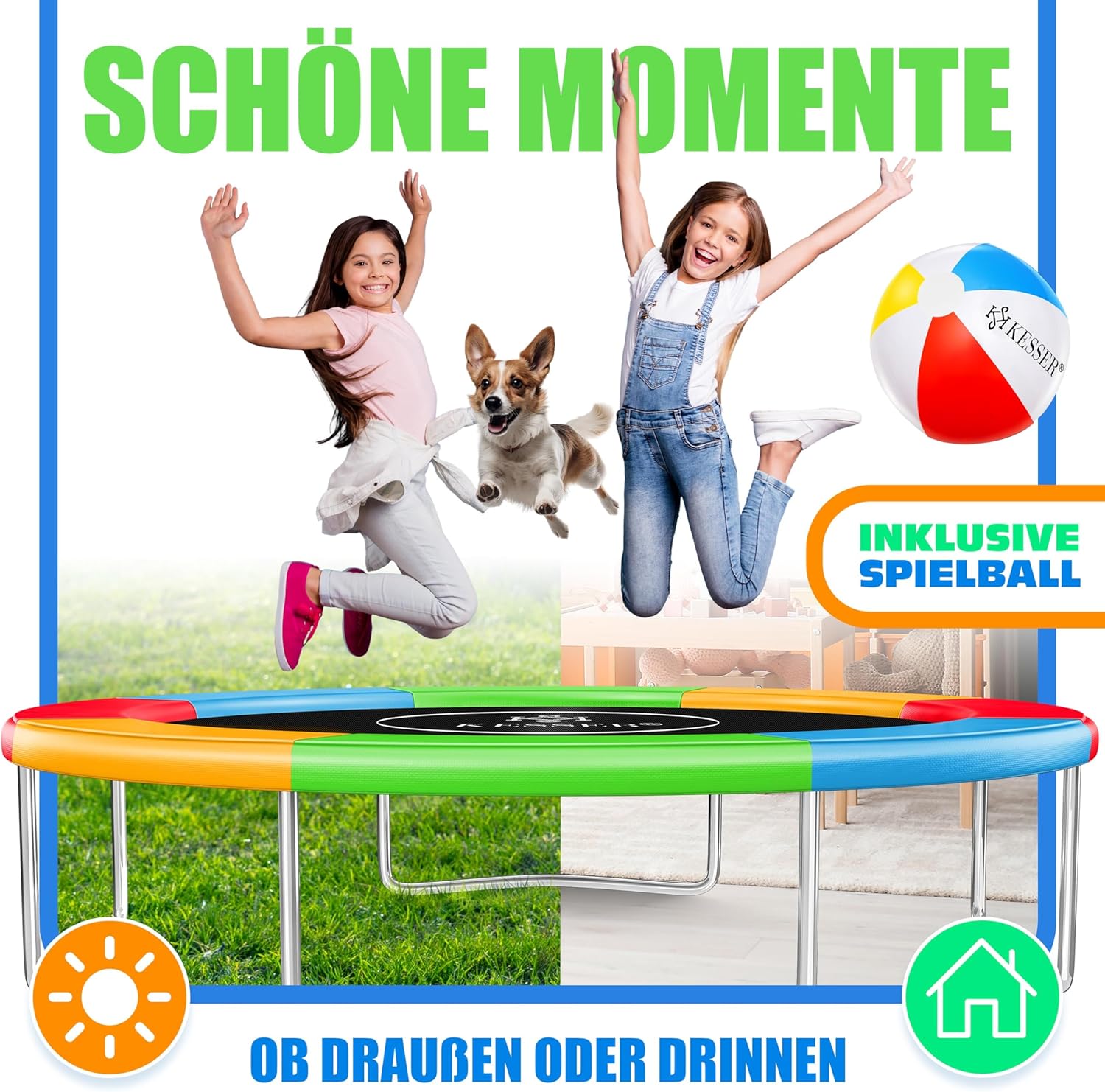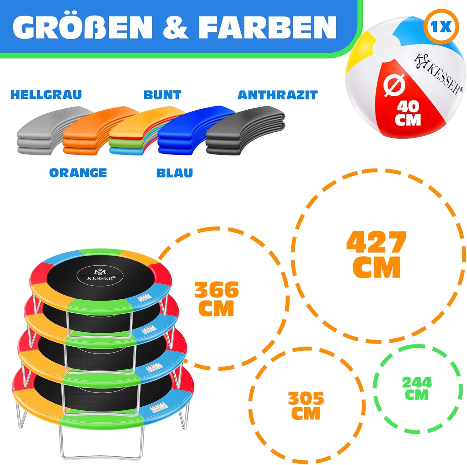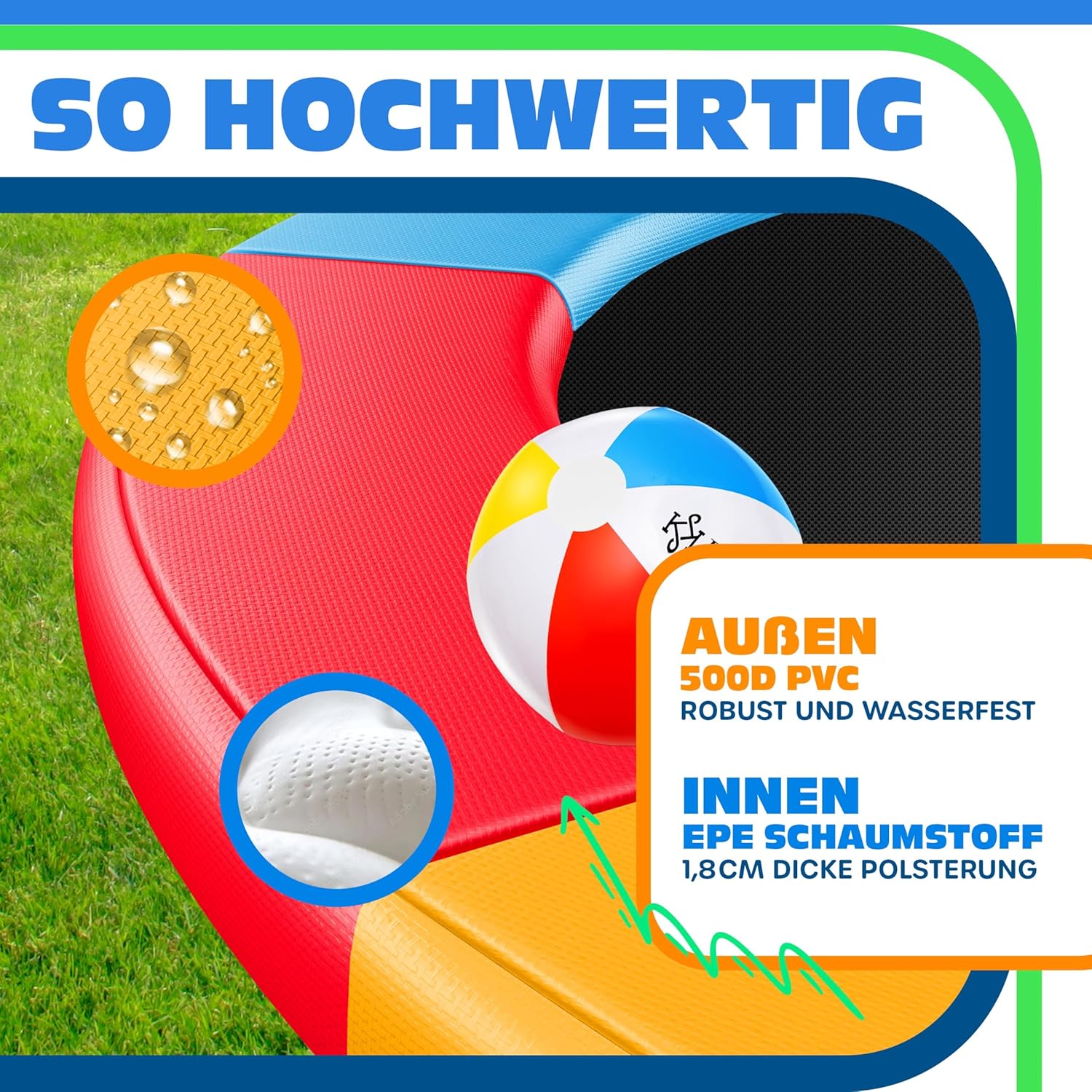 • Hoge veiligheid: het 1,8 cm dikke polyethyleen schuim en 30 cm brede afdekking dekt zowel de veren als de rand van de stang af en beschermt tegen letsel bij vallen op de veren of aan de rand. Incl. Beachball voor nog meer speelplezier!