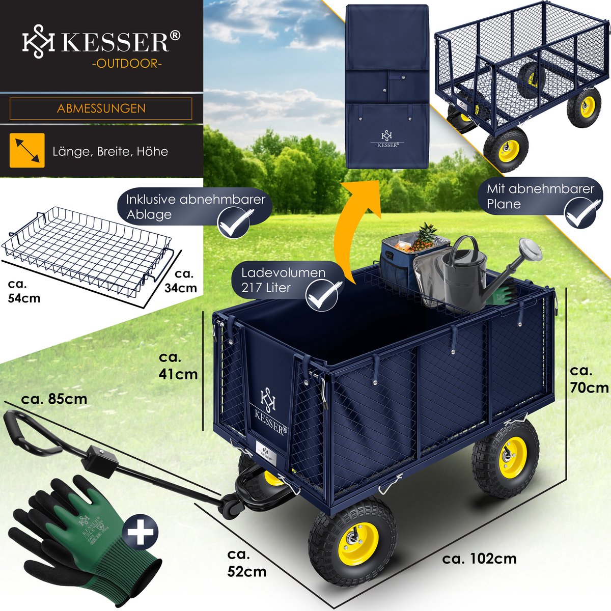 KESSER® Tuinkar - Bolderkar - 550 kg belastbaar - Marineblauw