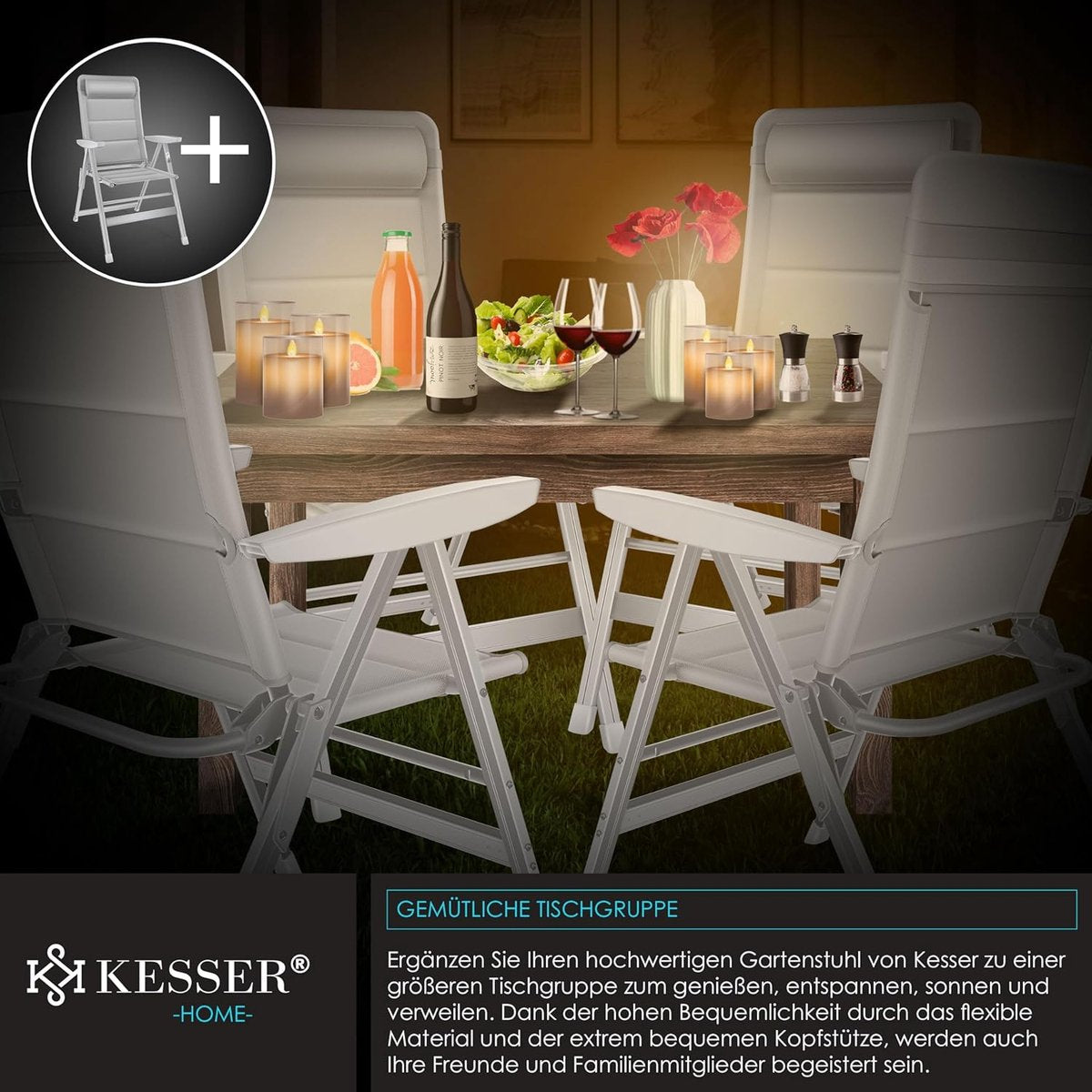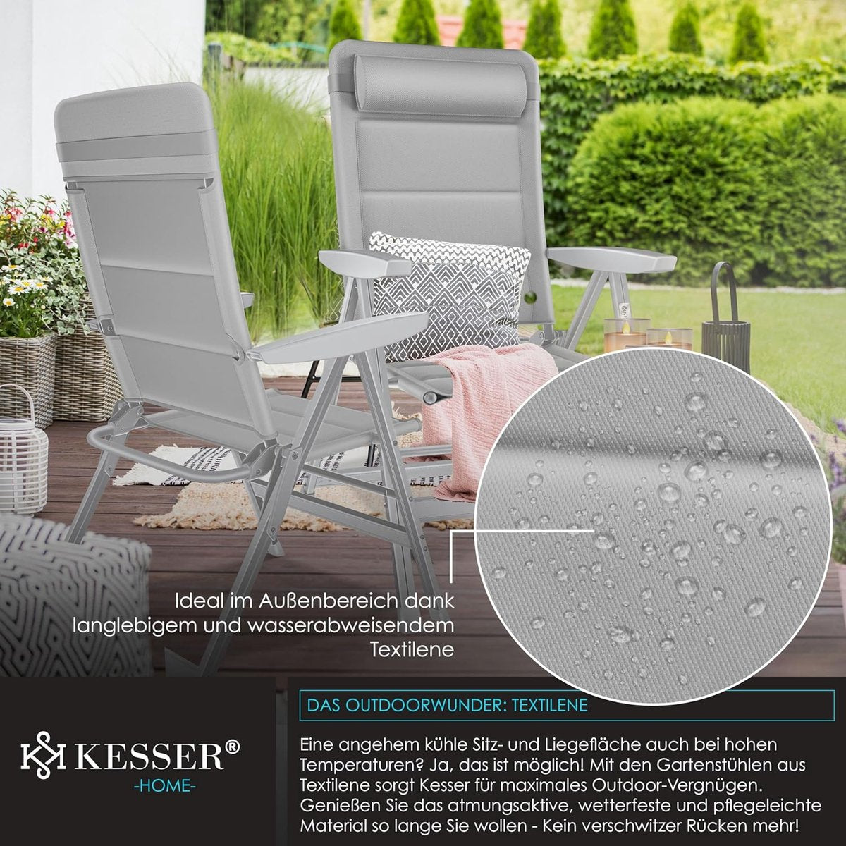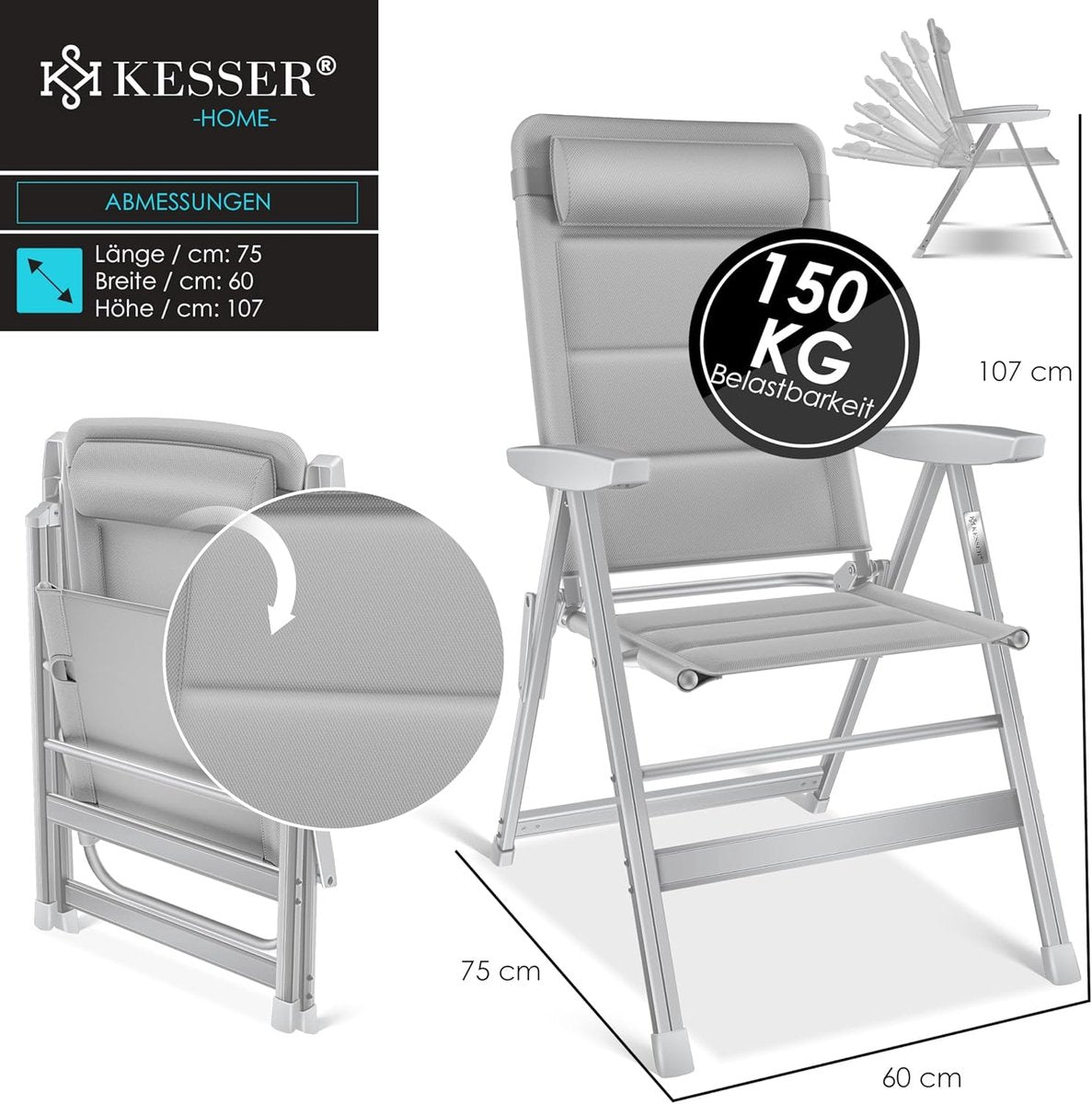 • Hoogwaardig materiaal: een bijzonder duurzaam en weerbestendig materiaal, biedt de Kesser klapstoel niet alleen uitstekend comfort, maar ook een lange levensduur. Het gepoedercoate aluminium frame zorgt voor stabiliteit en robuustheid, terwijl de eenvoudige vouwfunctie een snelle en ruimtebesparende opslag mogelijk maakt.