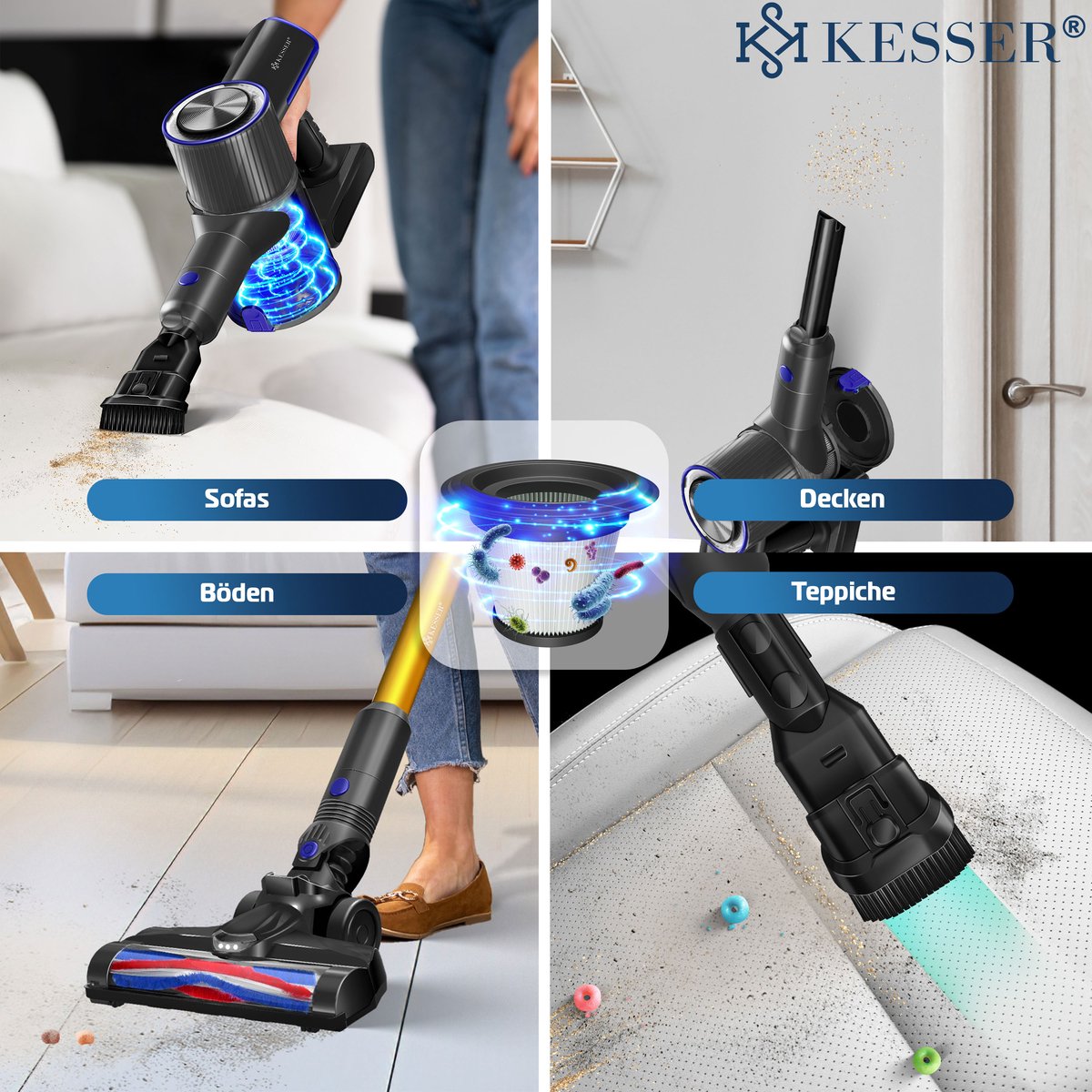 KESSER® Accu Stofzuiger 3-in-1 | Handstofzuiger zonder zak met HEPA-filter | Accuzuiger tot 60 minuten looptijd + voegmond & stofborstel | LED-licht XL stofcontainer voor harde vloeren tapijt huisdierenharen