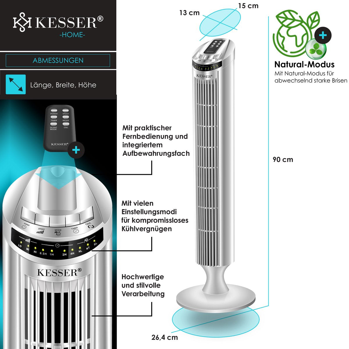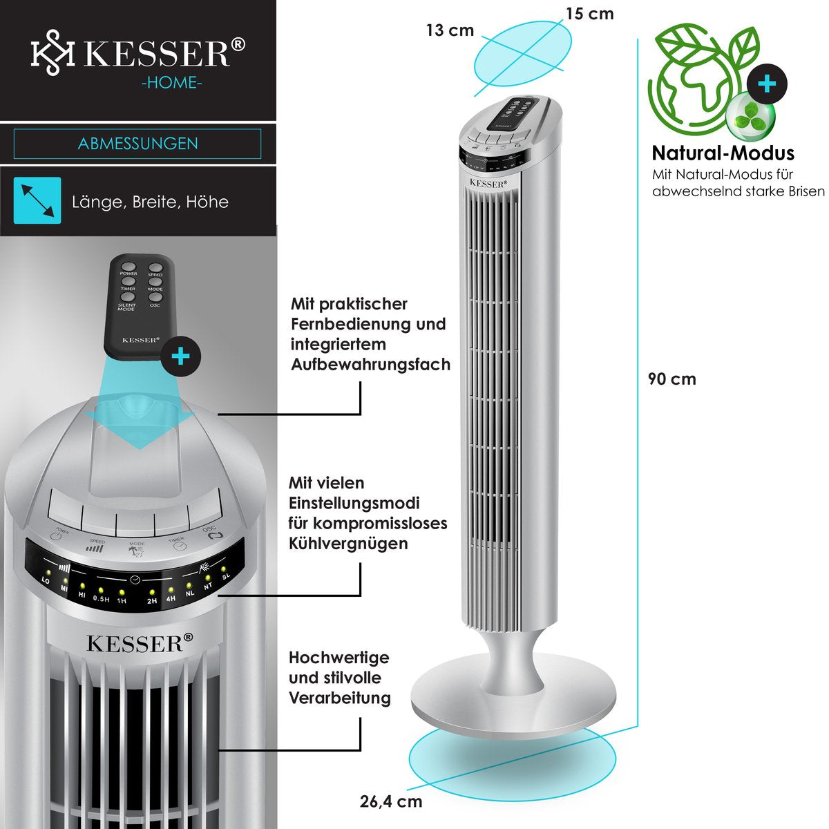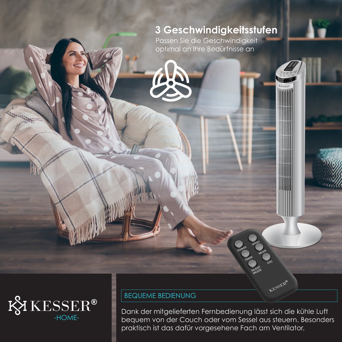 Uitstekende prestaties: Dankzij de 90 cm hoge constructie en de krachtige 45W motor verdeelt de ventilator de lucht verticaal over een groot oppervlak. Dankzij de 90°-oscillatie zorgt hij ook horizontaal voor een aangename frisheid. Bovendien draait de ventilator in een hoek van 90° heen en weer, waardoor koele frisheid in de kamer komt.