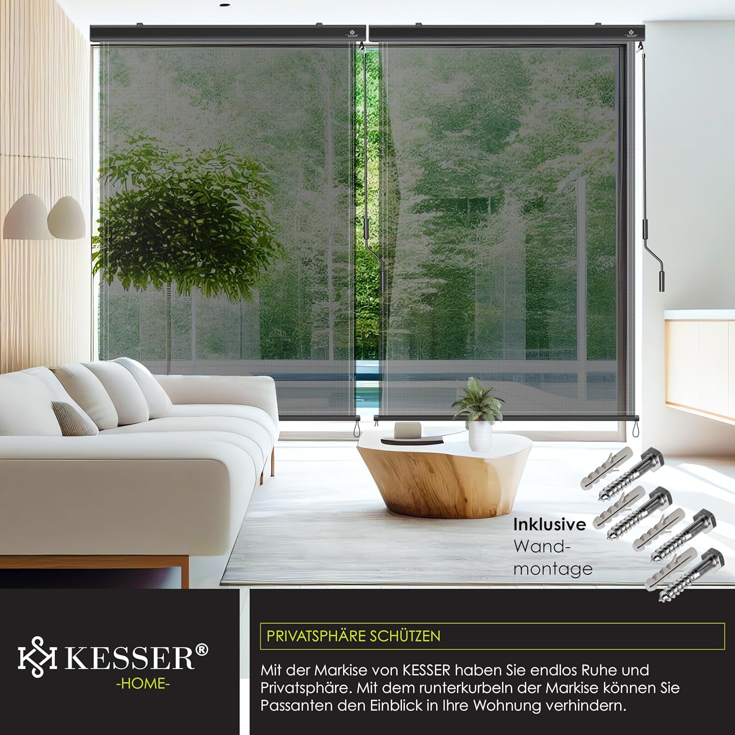 KESSER Verticale luifel van premium kwaliteit, lange houdbaarheid, geschikt voor binnen en buiten, inclusief montageset voor een veilige en flexibele installatie en afdekking ter bescherming van de luifel tegen weersinvloeden.