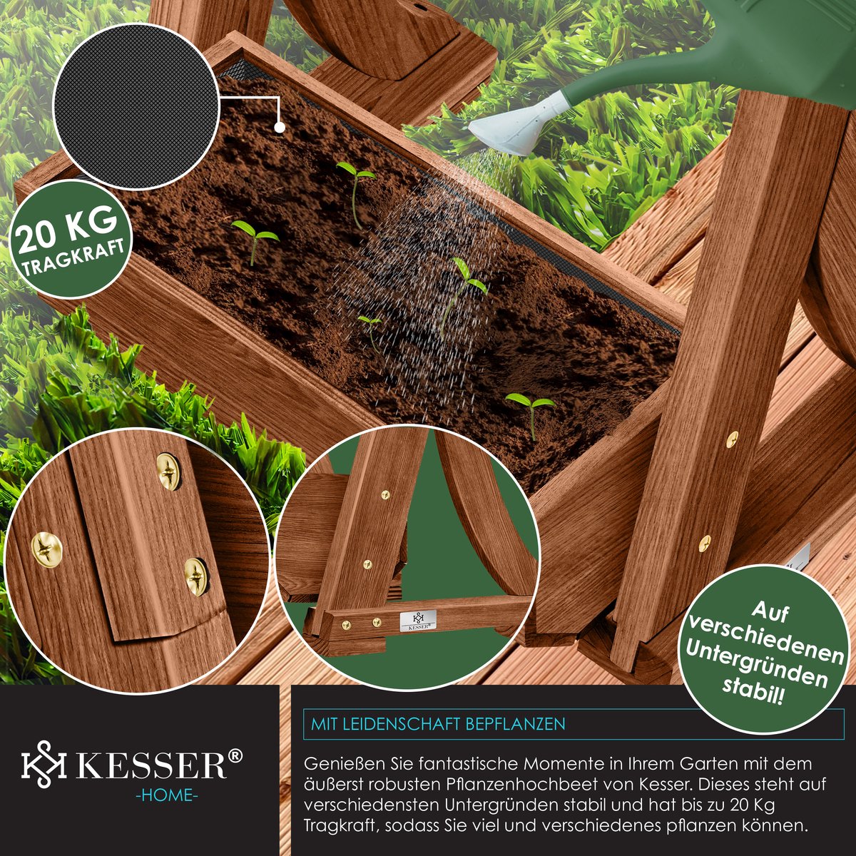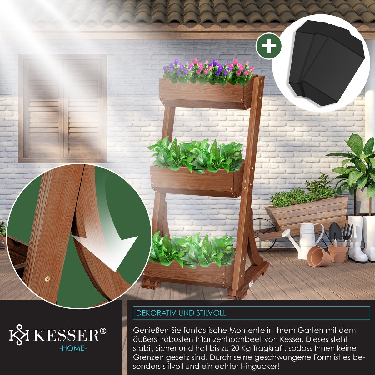 KESSER Verhoogd Bloembed met sterk draagvermogen op verschillende niveaus voor een verscheidenheid aan planten, weerbestendig dankzij hoogwaardige verwerking van duurzaam dennenhout, ideale zonbestraling door verstelbare hoek, inclusief tuinvlies voor alle niveaus.