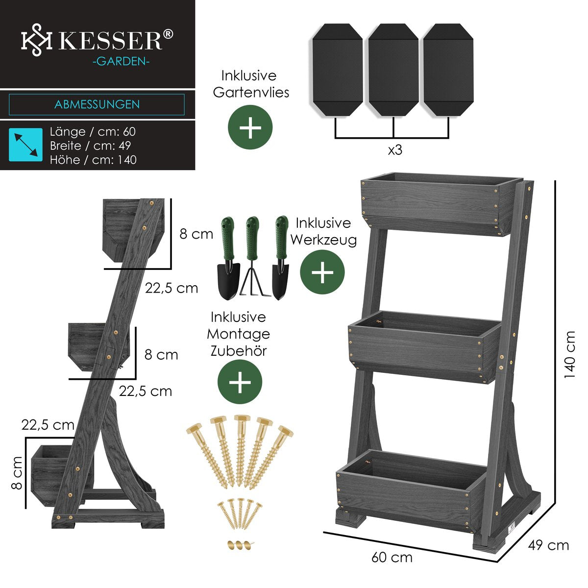 KESSER® Verticale Tuin met Plantenbak | Premium Bloembak | Bloementrap | Plantentrap - Moestuin Kruidenbed | Plantenbak inclusief Tuinvlies - Bed voor Terras Balkon & Tuin