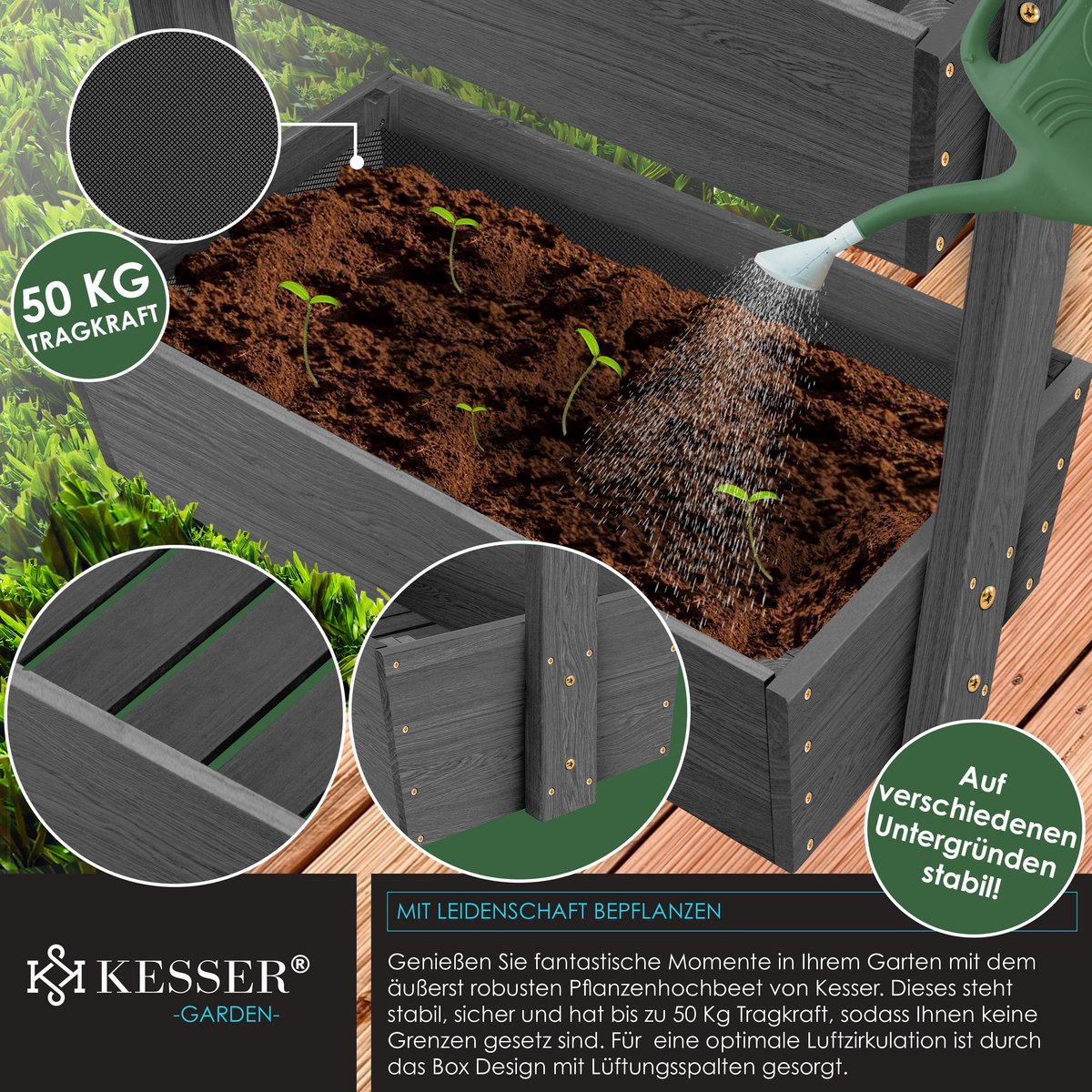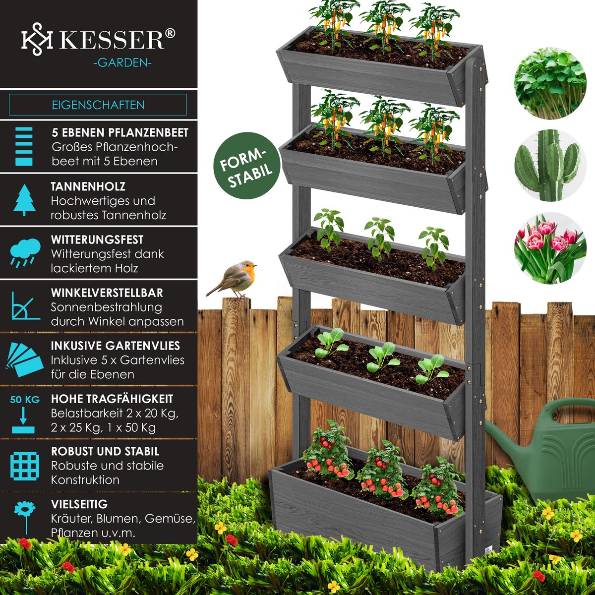 KESSER Verhoogd Bloembed met sterk draagvermogen op verschillende niveaus voor een verscheidenheid aan planten, weerbestendig dankzij hoogwaardige verwerking van duurzaam dennenhout, ideale zonbestraling door verstelbare hoek, inclusief tuinvlies voor alle niveaus.