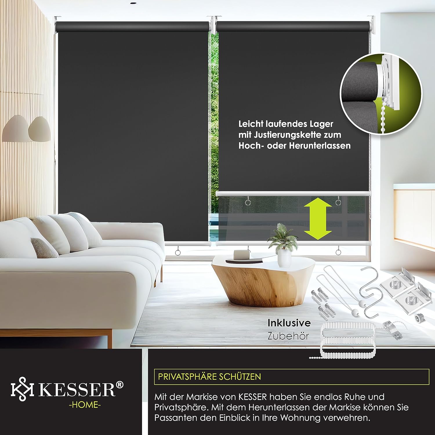 Te gebruiken als zonwering, inkijkbescherming, bescherming tegen verblinding en weersinvloeden. Onderhoudsvriendelijk materiaal voor snelle reiniging. In verschillende maten voor optimale bescherming. Uitvoering verkrijgbaar in drie verschillende kleuren voor de perfecte look. Snel en eenvoudig instellen van de gewenste hoogte door de verstelketting. Eenvoudige en veilige montage door meegeleverde montagehandleiding (mogelijk niet beschikbaar in het Nederlands)