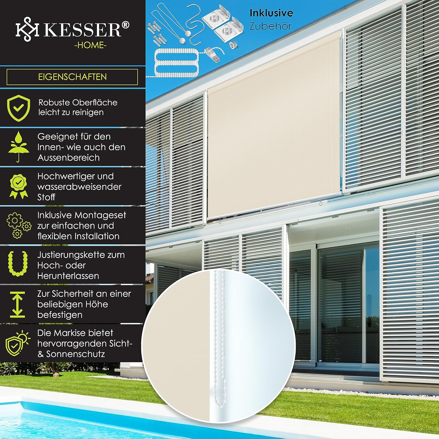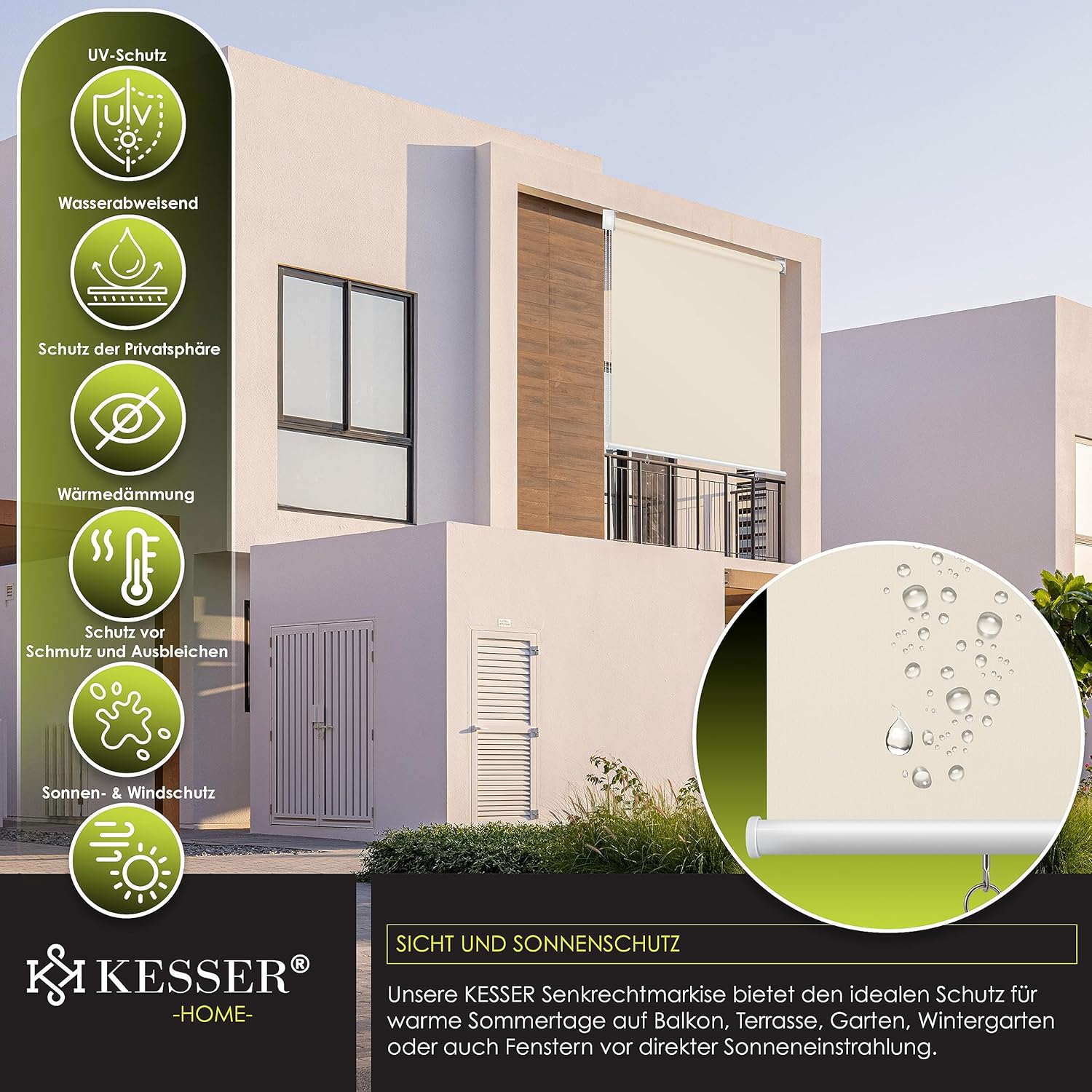 Onze verticale luifel van Kesser biedt de ideale bescherming voor warme zomerdagen op balkon, terras, tuin, serre of ramen tegen direct zonlicht. De inkijkbescherming beschermt je tegen de nieuwsgierige blikken van je buren, ontbijt rustig op je terras en geniet gewoon van je privacy.