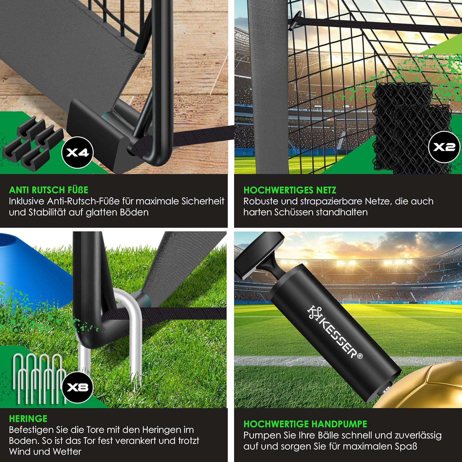 Ideaal voor kinderen en alles: ontworpen voor kinderen vanaf 4 jaar bieden de KESSER voetbaldoelen urenlang speelplezier in de tuin, park of op het sportveld. De set bevat ook hoedjes voor extra speelvarianten en een balpomp voor direct gebruik.