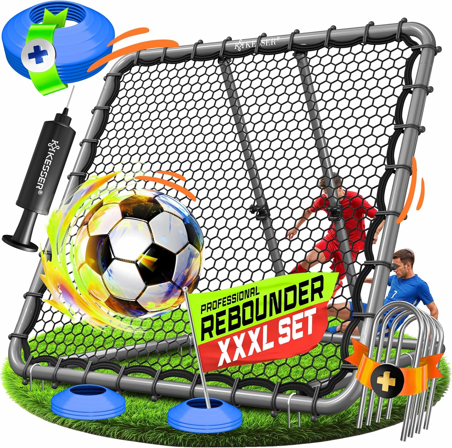 Stabiele structuur: het robuuste stalen frame en het scheurbestendig PE-net bieden maximale duurzaamheid en weerstand tegen sterke schoten. Weerbestendig en duurzaam voor elke training.